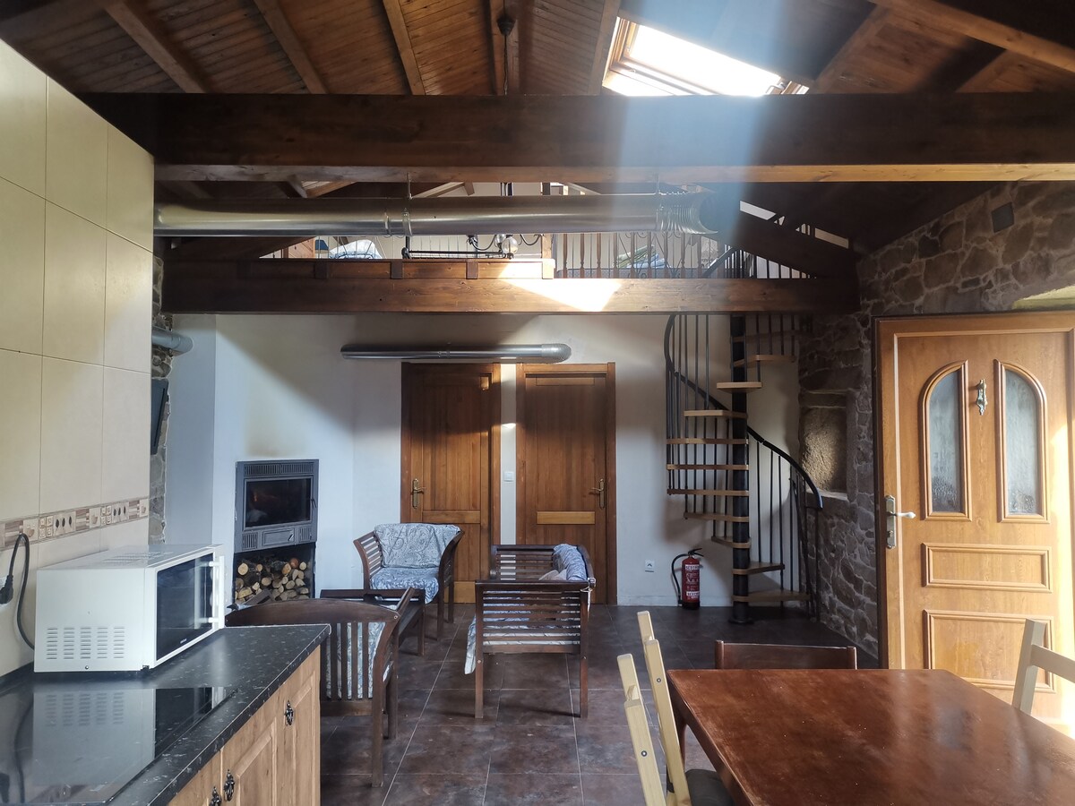 Máme osm míst, tři pokoje, obývací pokoj s krbem, kuchyň a tři koupelny, stejně jako krásný dvůr, verandu a 2000 m uzavřeného a oploceného pozemku pro domácí mazlíčky, gril a krásný bazén. Náš útulný dům se nachází 15 km od Santiaga přímo na Camino de la Plata, 300 metrů od posledního hostelu. Nacházíme se na Pico Sacro, odkud je vidět celý region. Ideální pro užívání si přírody, klidu a ideální polohy pro výlety.