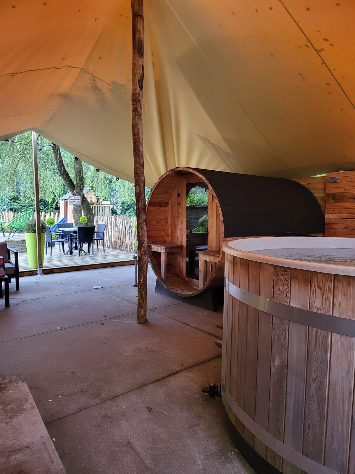 Romantika a pohodlí Pobyt v naší vyhřívané jurtě je jedinečný zážitek. Nádherné místo, oáza klidu na našem krásném pozemku. Krásná postel, příjemná atmosféra, ticho a probouzení za zpěvu ptáků… Máš možnost rezervovat si naše wellness na večer odděleně od 19:00. Od 1. února je cena 70 EUR. Vířivku a saunu si můžeš pronajmout i samostatně za 45 € za noc.