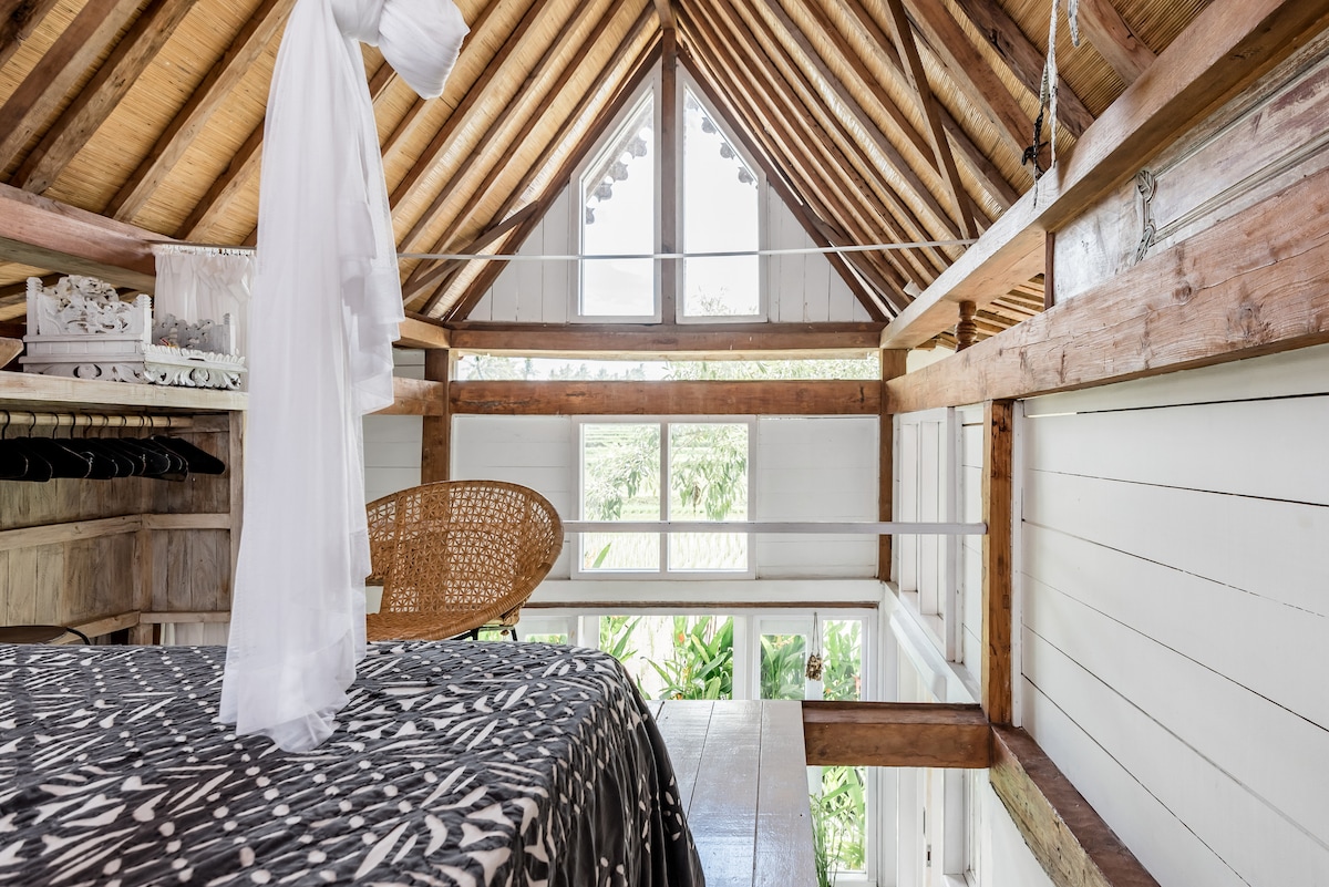 Autentický přestavěný starý jávský dům zasazený do nesmírně krásné přírody 4 km severně od Ubudu s nádherným výhledem na bujnou tropickou džungli až po sopky Batukaru ⛰️⛰️⛰️ Jedinečné útočiště, kde se cítíte jako před 20 lety v Ubudu, kde jste mohli relaxovat, omlazovat se, cvičit jógu a meditaci, dostávat léčebné masáže nebo zvukové lázně se starožitnými nepálskými zpívajícími miskami, vychutnávat si domácí zdravé jídlo s vysokými vibracemi a spojit se s přírodou, která je velmi živá v každé trávě 🌱