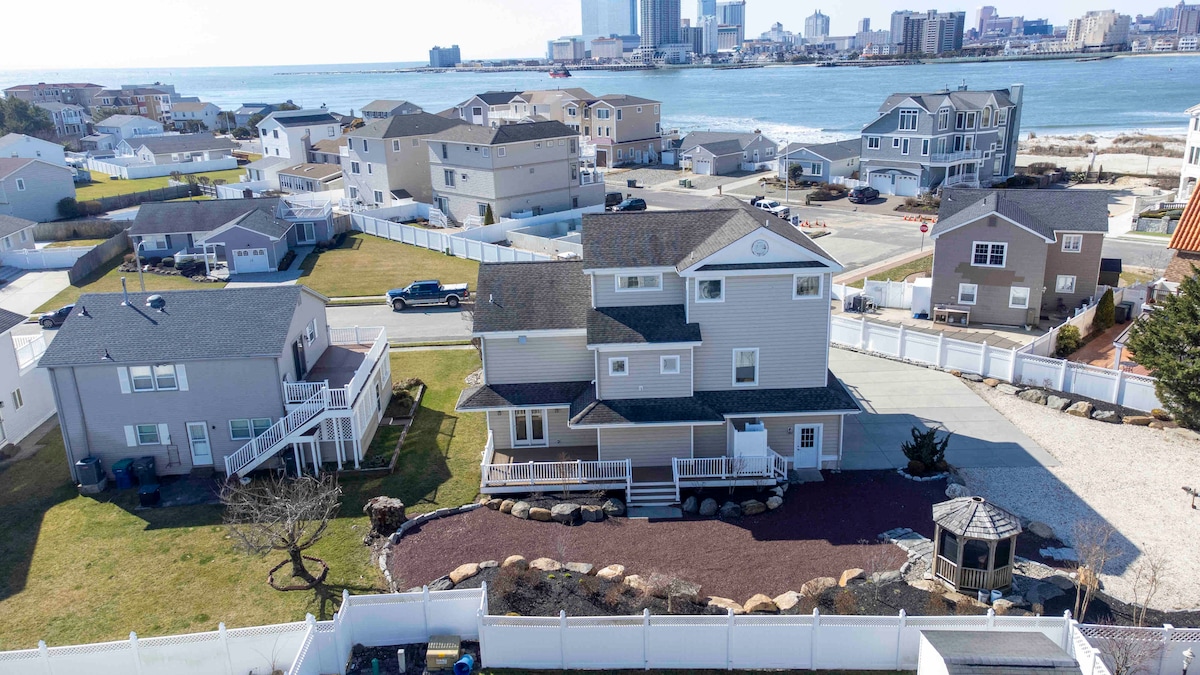 Udělejte si ze svého pobytu v Atlantic City něco VÝJIMEČNÉHO! Vítejte v našem na míru postaveném „Corner Beach House“, kde se můžete těšit na jeden z nejlepších výhledů na oceán a zátoku v Atlantic City. Z kterékoliv z pěti palub sledujte východ a západ slunce, sledujte, jak se kasina rozsvěcují na večer, vnímejte oceánský vánek, sledujte, jak se nad oceánem zvedá úplněk a vrhá měsíční paprsky, které se zdají být přímo u vás, sledujte svou rodinu a přátele na chráněné pláži jen pár kroků od vašich předních dveří! Užij si grilování na terase! Ano!