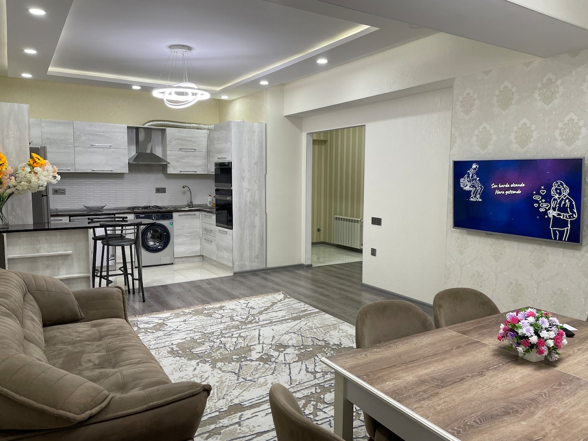 Апартаменты расположены в 3 км от самого центра Баку. В двух минутах ходьбы станция метро Elmler Akademiyasi. В числе удобств апартаментов полностью оборудованная кухня с холодильником, гостиная зона с диваном, телевизор с плоским экраном, спальня с двухспальной кроватью, собственная ванная комната с душем, стиральная машина .К услугам гостей бесплатный Wi-Fi. Бесплатная парковка. Прогулка от апартаментов до многочисленных кафе, ресторанов и магазинов занимает 5 минут.