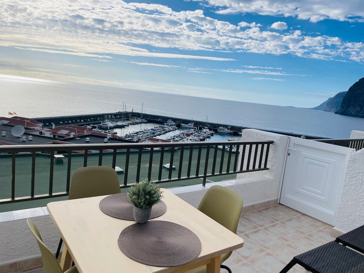 Vítejte v nově zrekonstruovaném, elegantním apartmánu u oceánu v centru půvabného města Los Gigantes. Náš byt byl nově zrekonstruován ve stylu Hampton, který kombinuje přímořskou atmosféru s nádechem elegance a pozorností k každému detailu. Úžasnou výhodou tohoto místa je obrovská terasa s nádherným výhledem na přístav a velkolepé útesy Los Gigantes. Tady můžeš vidět nejkrásnější západy slunce na ostrově a cítit oceánský vánek na tváři