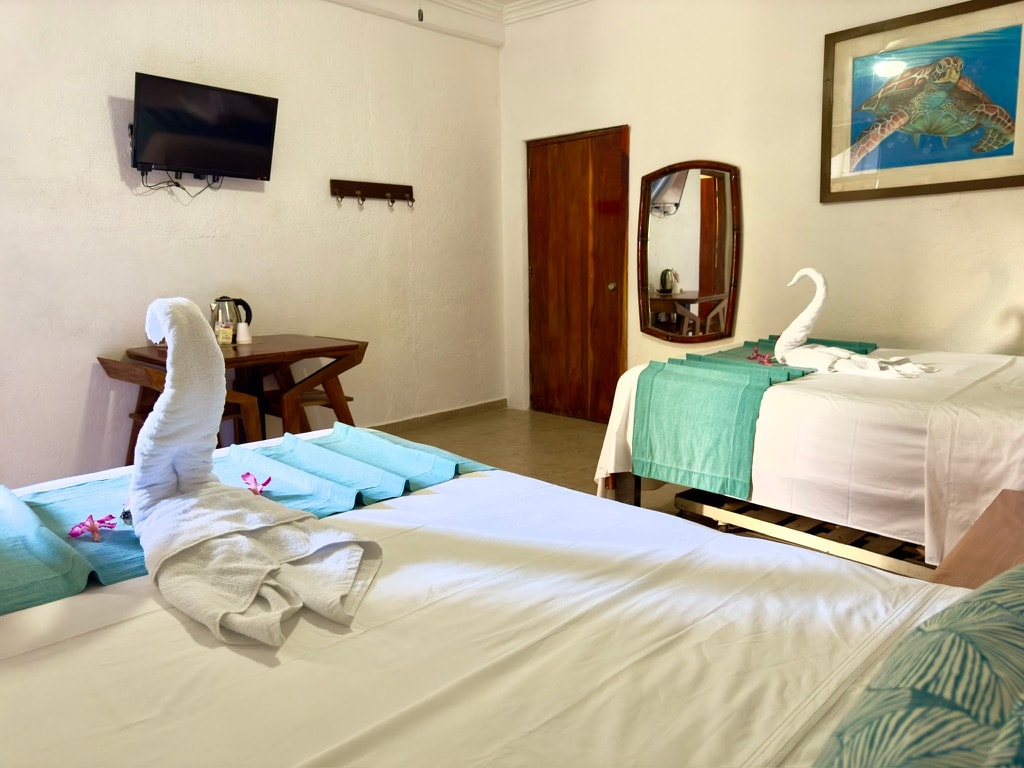 Vítej ve Villa Arena! Tento rodinný pokoj nabízí pohodlí a klid se dvěma manželskými postelemi, klimatizací a internetem. Přístup k bazénu a chapoteadero. Odpočiň si na soukromé terase s houpací sítí. Vlastní koupelna s teplou vodou. Užij si bazén a restauraci. ¡Jsme přátelští k domácím mazlíčkům! Ponoř se do přírodních krás Barra de Coyuca se zlatavými písečnými plážemi, křišťálově čistou vodou a vodními aktivitami. Rezervuj nyní a užij si domácí zážitek!