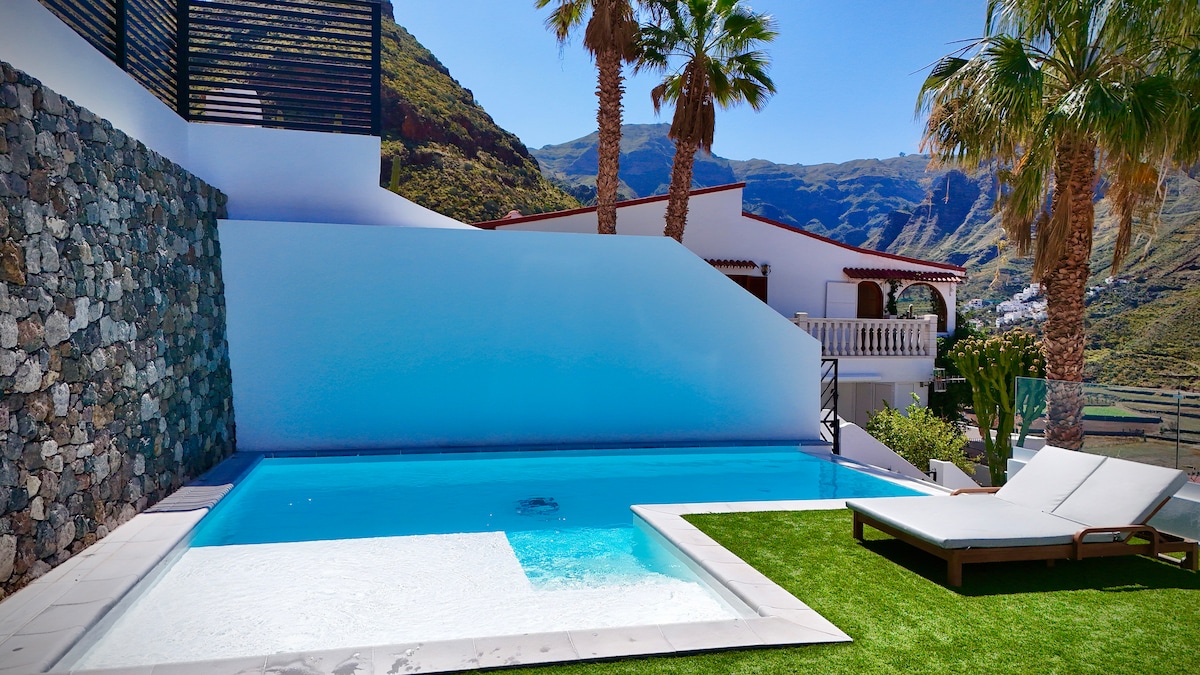 Útulný a jedinečný malý dům v jednom z nejkrásnějších měst ve Španělsku, které je také zapsáno na seznamu světového dědictví, je součástí snu. Pokud jste jedním z těch, kteří milují přírodní prostředí, snové výhledy a milujete pěší turistiku, toto je váš malý domov! Má 2 ložnice, vybavenou kuchyň, klimatizaci, obývací pokoj, koupelnu, toalety, terasu s malou zahradou. Střešní terasa s výhledem na Roque Nublo a Roque Bentayga. Wi-Fi zdarma Odpočiňte si, objevujte a nechte se unést