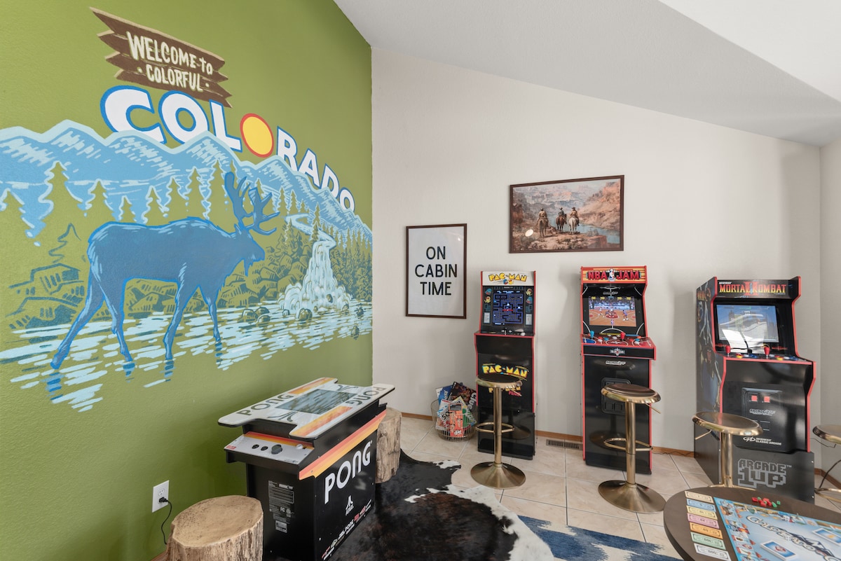 Tento jedinečný, super zábavný moderní dům s popartovým tématem tě určitě inspiruje! Luxusní dům se nachází 9 minut od centra Denveru a pojme 16 osob v lůžkách, s 3700 čtverečními metry obytného prostoru na obrovském 1/3 akrovém soukromém pozemku. Má 6 ložnic, 3 koupelny, plně vybavenou kuchyň a samostatný kuchyňský kout, obývací pokoj, hernu s arkádami a filmovou místnost se 100palcovou obrazovkou 4K a prostorovým zvukem. Venkovní prostory jsou ideální pro setkávání, s krytým posezením kolem ohniště a kompletní venkovní jídelní soupravou.