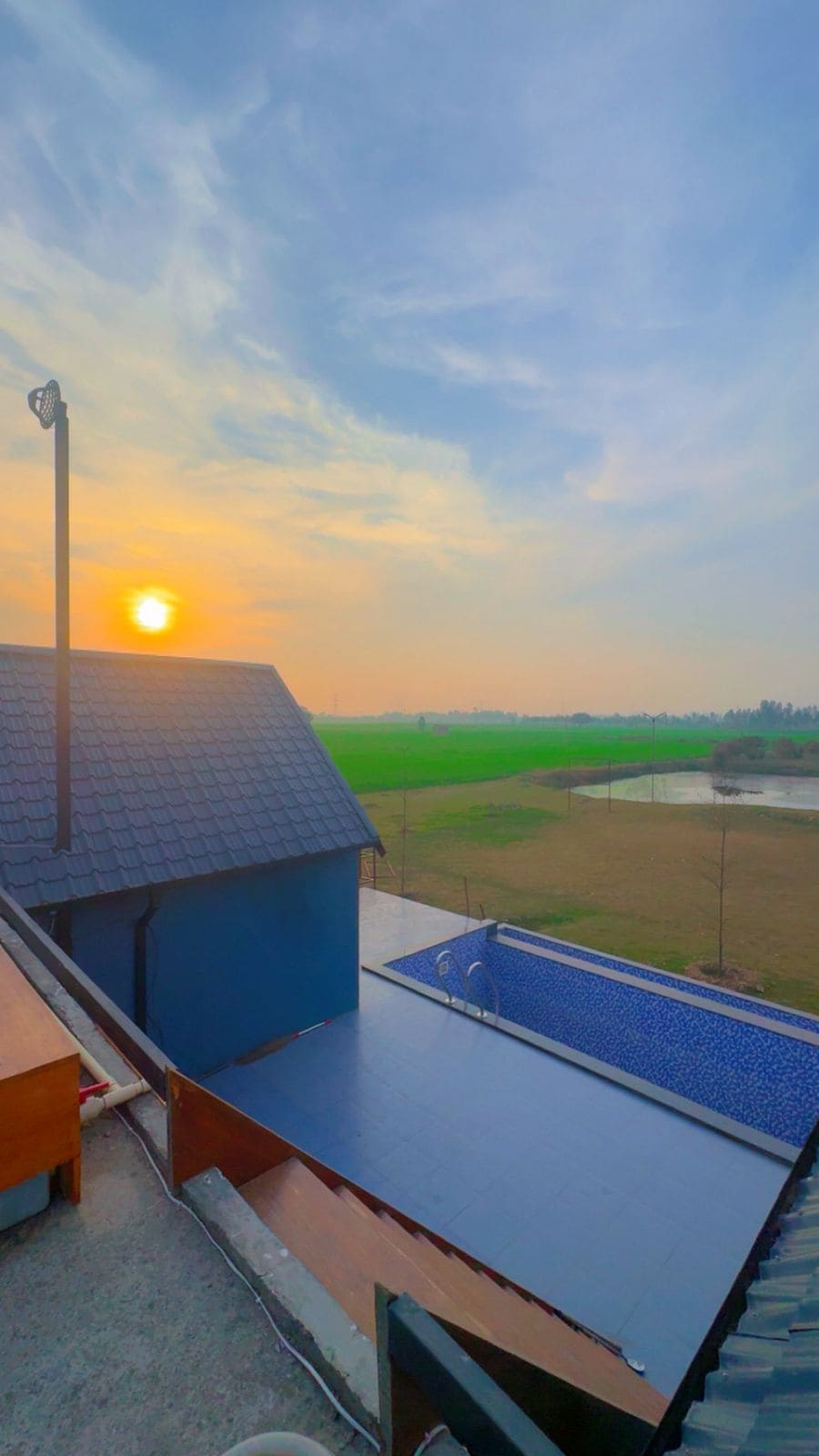 Farma Virasat poblíž Chandigarhu s velkým 15metrovým bazénem