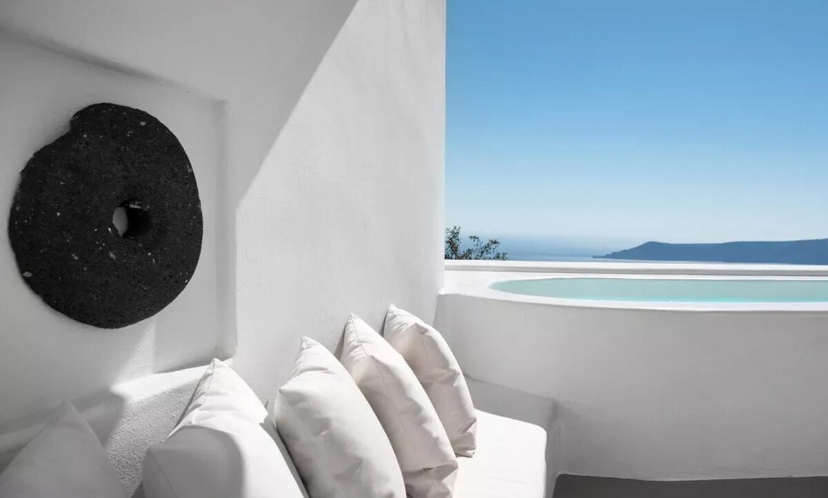 Apartmá pro novomanžele s výhledem na kalderu a vířivkou
