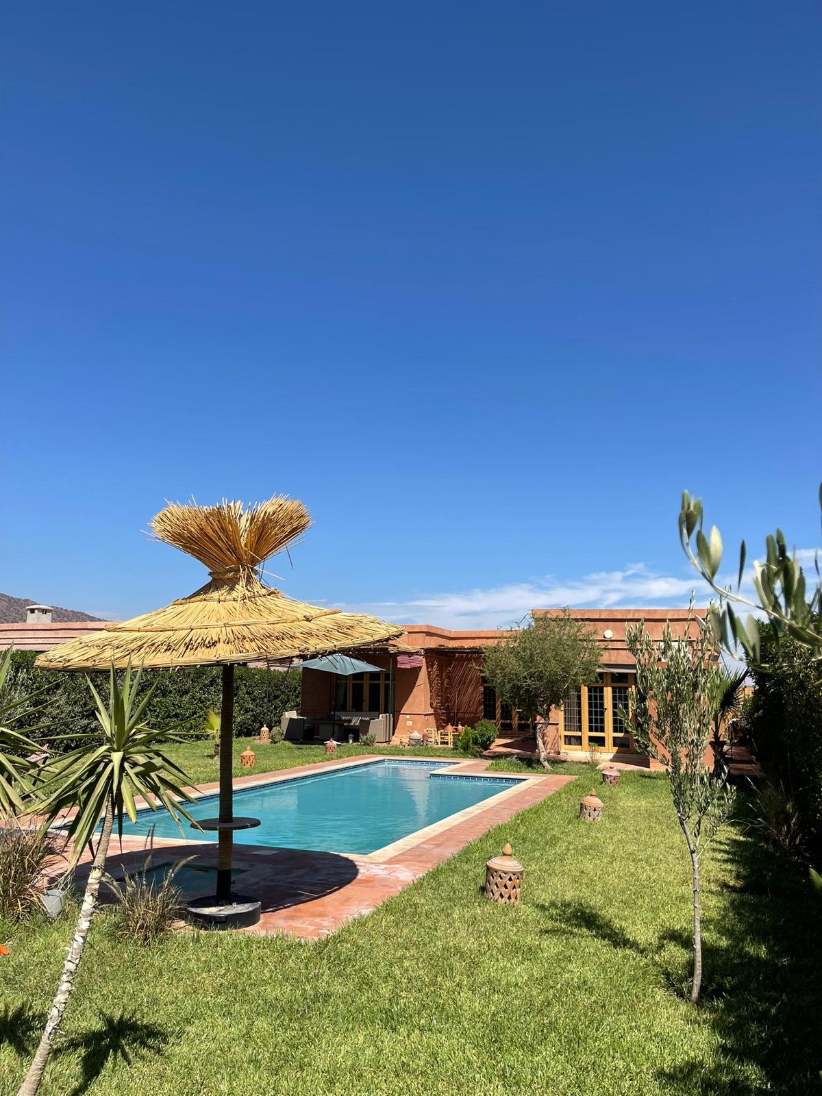 Krásná okouzlující nemovitost mezi horami a oceánem, „kamenný přehoz“ od pláží a 16 km od Agadiru, s bazénem, barem s atmosférou, parní lázní, velkou 700 m2 terasou, 10 lehátky, fontánou, velkou zalesněnou zahradou s ovocnými stromy. Užij si velkou pergolu o rozloze 45 m ² s marockým obývacím pokojem, letní jídelnou, lednicí, mrazákem a vybavením s domácími spotřebiči, plynovým sporákem, planchou. Vše, co potřebuješ k vaření velkého venkovního parkování. Krásná veranda