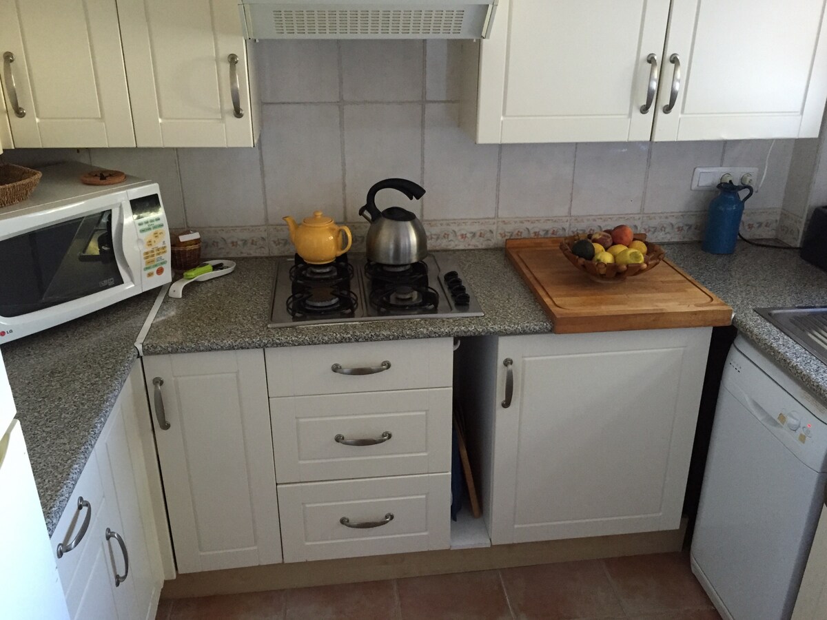 La Pita se nachází v krásném městě Las Negras,v centru přírodního parku Cabo de Gata. Je skvělé se odpojit. Nachází se v soukromé zástavbě 100 metrů od pláže s paddel kurtem a společným bazénem/soláriem. It has a bright living-dining room with the fully equipped kitchen open to the living room, and hot and cold air conditioning. Jedna koupelna s toaletou a koupelna s umyvadlem. Dvě ložnice, jedna s manželskou postelí s výhledem na terasu a jedna se dvěma samostatnými lůžky.