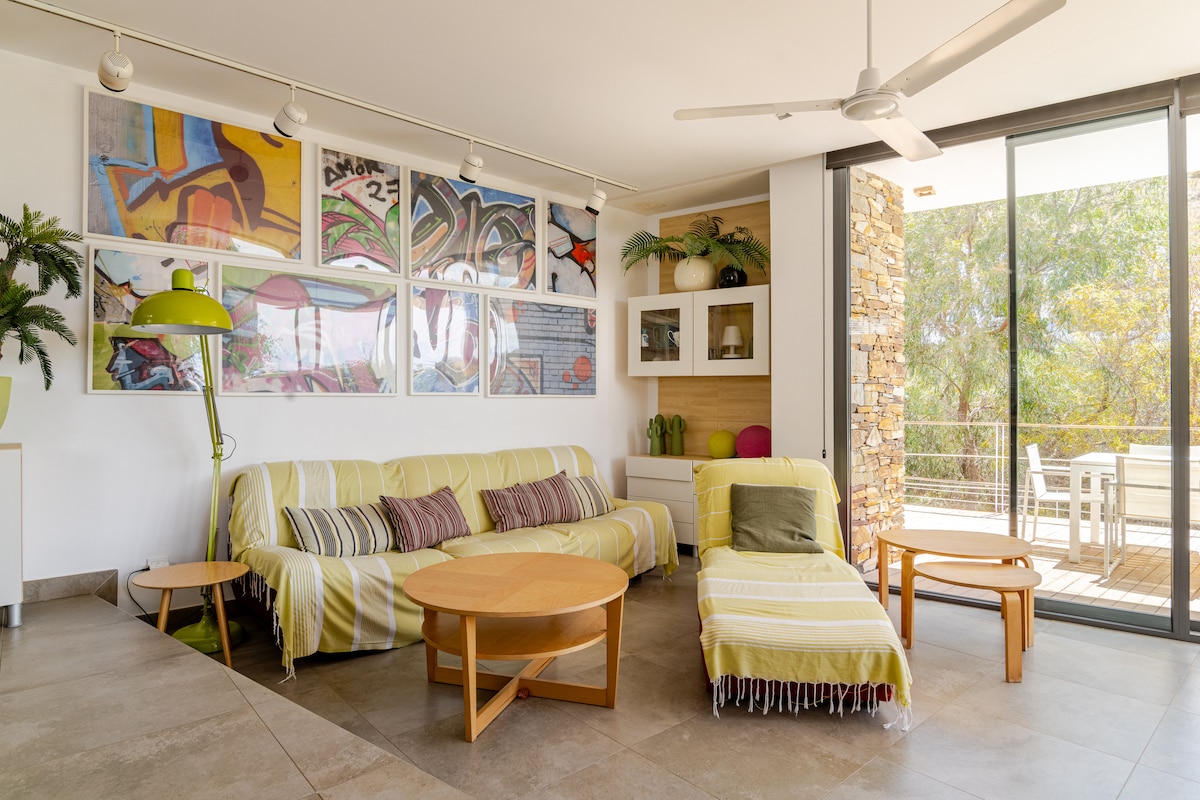 Casa de diseño único, construida en obra con formas curvas que crean un espacio acogedor y especial. Ubicada junto al casco antiguo de Níjar, ofrece tranquilidad y encanto local. Cuenta con terraza privada y agradables vistas, ideal para relajarse. A solo 15 minutos en coche de las playas de Cabo de Gata. Dispone de aire acondicionado, WiFi y todo lo necesario para una estancia cómoda. Perfecta para desconectar.