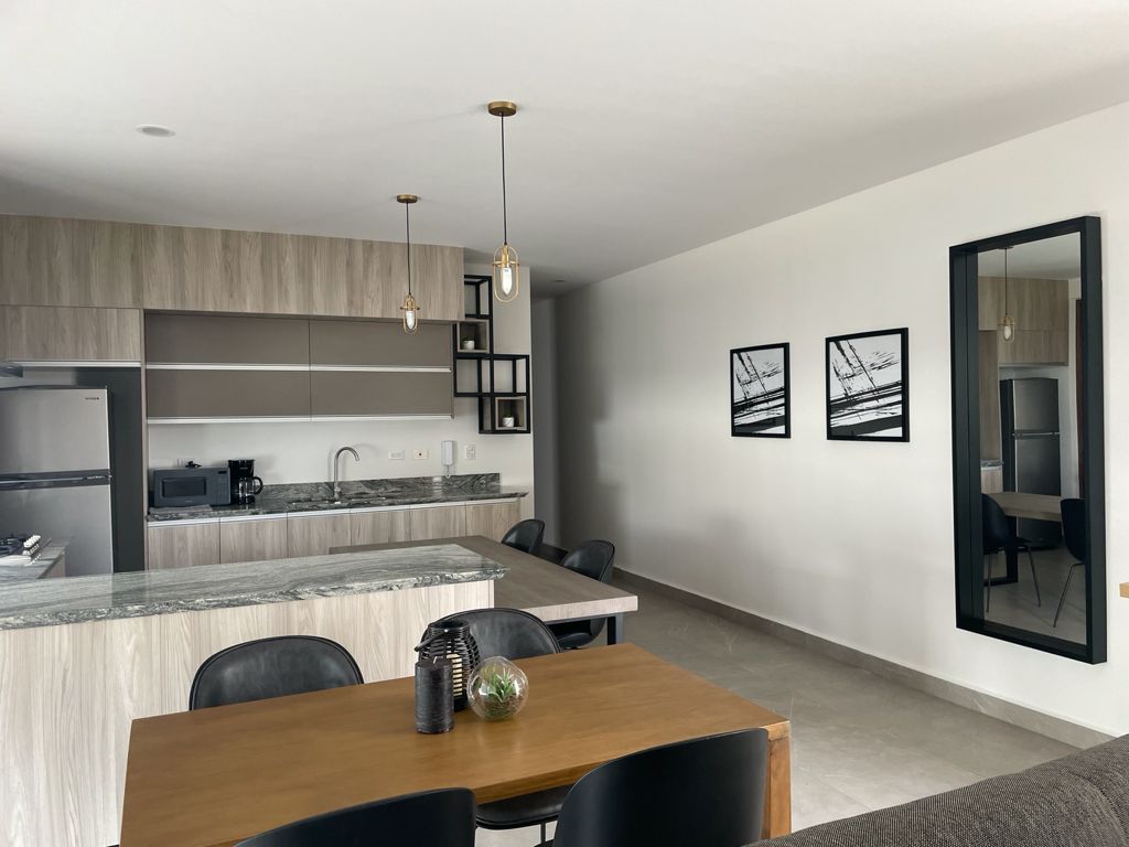 Omega Black, New Apartment 7 min from Colosio Av. Amazing view from 8th floor, TV 75", 65" and 58", private terrace, Optional AC for main bedroom $300 per night (included in fair). 24 Hr security guard, private parking, and 2 elevators. Currently Building ammenities are restricted for Airbnb. Commercial center with Starbucks and Gold Gym at one side of the tower. One car allowed.