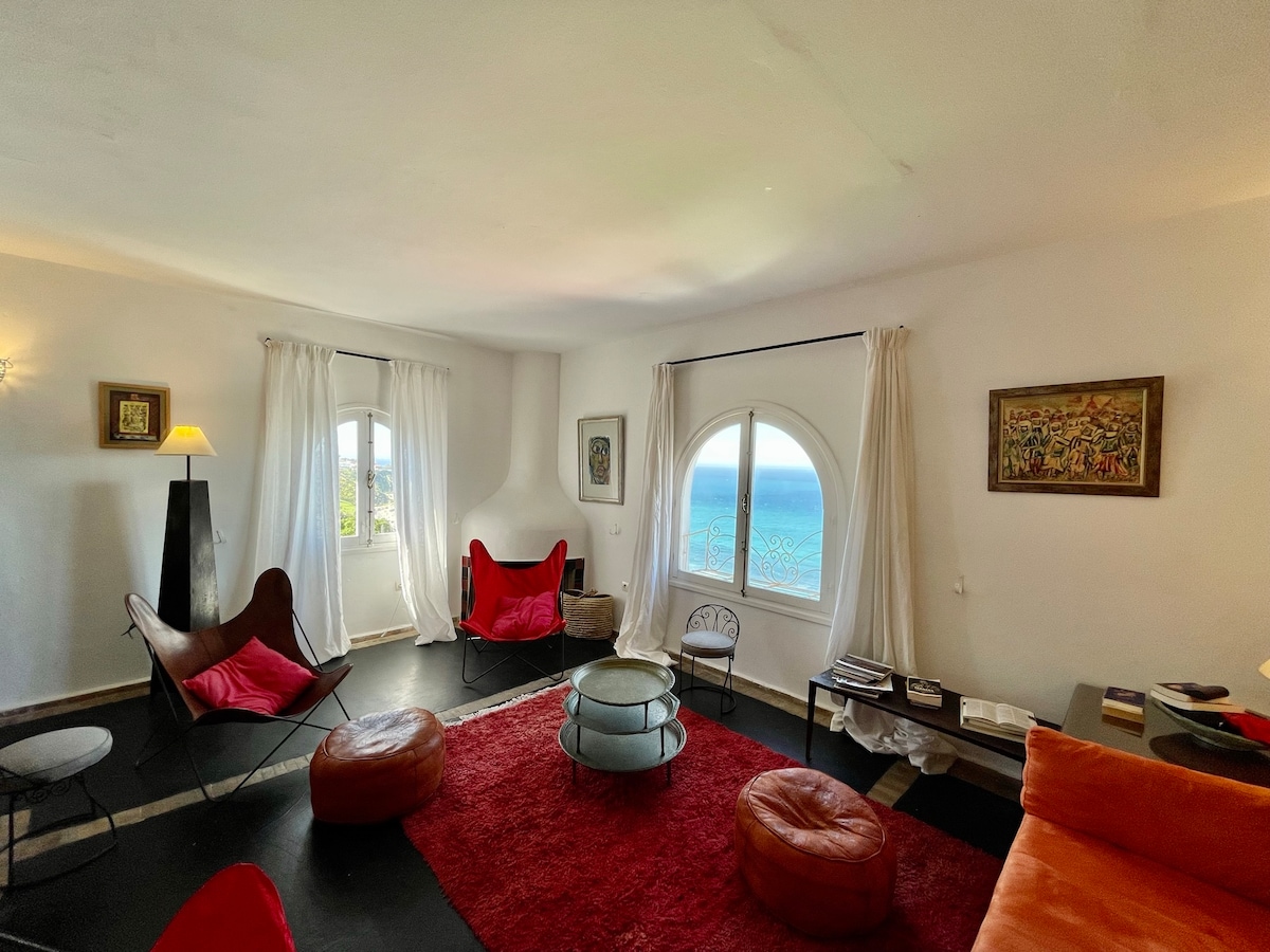 Je to nádherný dům ve stylu Hispano-maurském ze 30. let. Elegantní, prostorný, zalitý světlem a sluncem. Bez přímého souseda, s výhledem na Kasbah, zátoku Tanger, průliv, Gibraltar a Španělsko: pohled na toto místo a jeho prvky je ohromující. Úplná změna prostředí: už Orient, ještě Evropa. Z tohoto domu se můžete vydat všemi směry: do mediny, do města a do okolí: na pláže, do restaurací, na procházky.