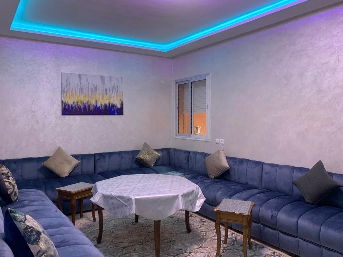 À 15 min à pied de l’aéroport, ce superbe appartement allie confort et modernité ! Profitez d’un grand salon lumineux, de deux chambres douillettes et d’une cuisine entièrement équipée pour vos repas comme à la maison. Idéal pour voyageurs ou familles, il offre Wi-Fi, salle de bain moderne et quartier calme proche des commerces. Un cocon parfait pour un séjour relaxant et pratique ! Important : le logement n’est pas accessible aux couples marocains non mariés.