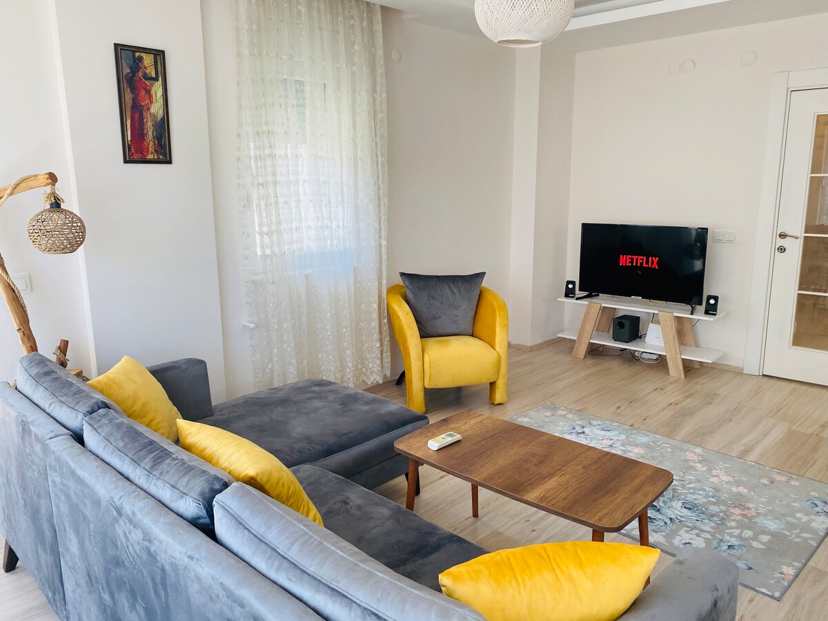 Apartmán v prvním patře. 2 ložnice v každém pokoji - každý pokoj je pro 2 osoby + jednolůžko v obývacím pokoji + rozkládací pohovky takže dům stačí pro maximálně 7 osob in the best location of Antalya - right in the center, near old town and all shoppings, cafes and beach. you will be close to everything you need. Naše budova je v klidné čtvrti, zbrusu nový, každý pokoj má balkon. V blízkosti autobusů a tramvaje. můžeme ti pomoci Pronajmi si auto Turecká SIM karta Vyzvednutí na letišti Prohlídky v okolí
