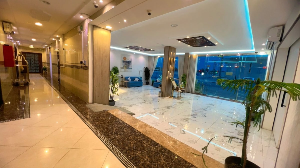 Byt se skládá z elegantní haly + hlavní ložnice (s nejlepšími typy matrací) + koupelny + Soukromé parkoviště (garáž) Smart TV, která podporuje (Netflix + Shahid + YouTube) K dispozici je wifi