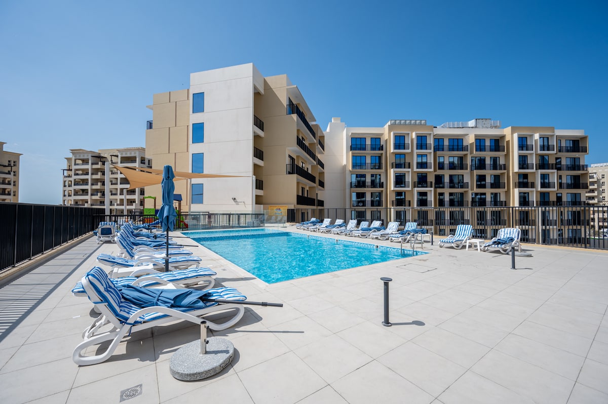 Tento elegantní apartmán se nachází na ostrově Al Marjan, jen pár minut od připravovaného letoviska Wynn Resort. Náš apartmán má přístup na soukromou pláž, kde si můžete zaplavat, opálit se a užít si výběr restaurací a kaváren. Snažíme se vám nabídnout 5* hodnocený zážitek. **V současné době probíhá výstavba kolem ostrova a existuje možnost rušení hlukem**