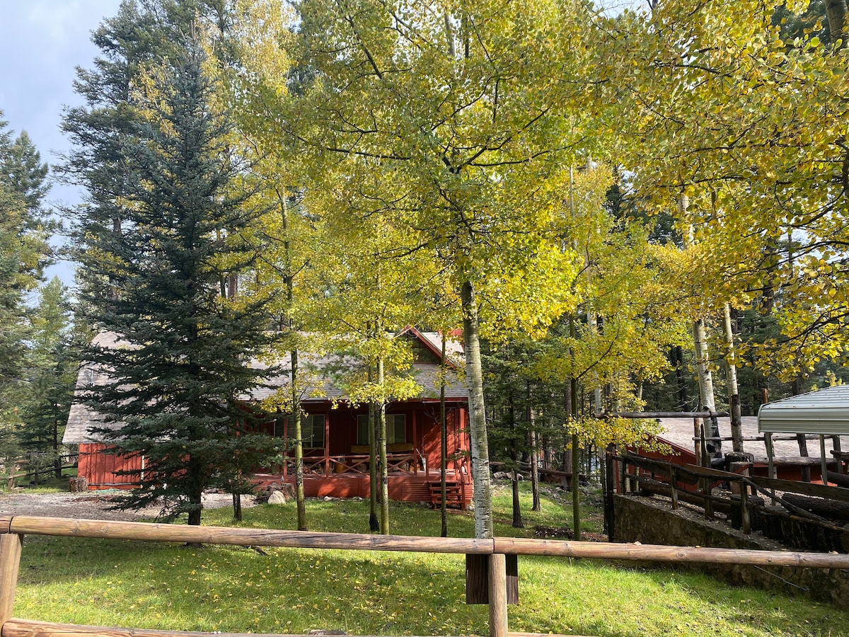 Welcome to Shangri-La! A unique, private, and magical setting right in the middle of Cloudcroft. Almost half a fenced acre where you can wander the grounds, enjoy the fire pit, read in the cozy separate office, or grill on the barbecue. Within walking distance of the Lodge and golf course, or the Village boardwalk for shopping. Lots of personal touches! And if you watch for fairies, birds, or other forest creatures, they are all close by! Hot plate, fridge, and microwave provided.