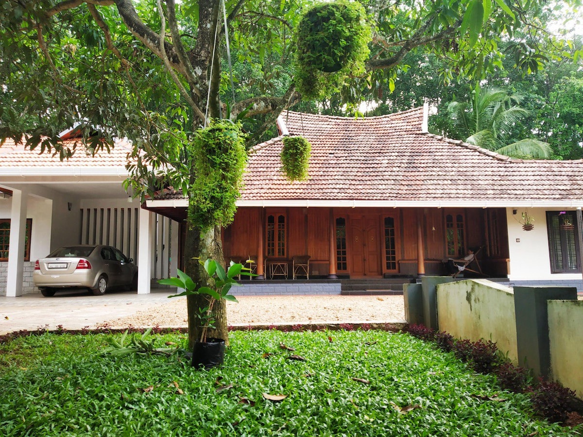 Enjoy and relax with the whole family and friends. Beautiful riverside stay in a rustic village. Function hall with mike and speakers. Yoga meditation classes. Enjoy the river in rustic village. Healthy and amazing home made Kerala food. Loving family. BBQ and more..