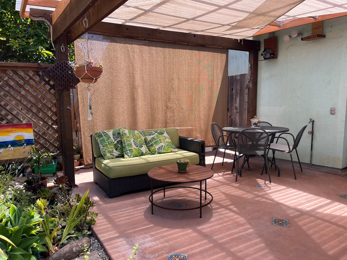 Útulná chalupa na společném dvorku se slunečnou terasou pro relaxaci venku. Studio je odděleno od domu s manželskou postelí, koupelnou se sprchovým koutem, kuchyňkou a jídelním koutem. Vše, co potřebujete k relaxaci a přípravě jednoduchých jídel, včetně kávy a čaje. Jeden blok od Solano Ave pro restaurace a nákupy, několik bloků pěšky od Whole Foods a dalších restaurací. V blízkosti Bart a jeden blok od autobusové zastávky do SF. Pěší turistika v Tilden Parku nebo kaňonu Wildcat je jen 10 minut jízdy.
