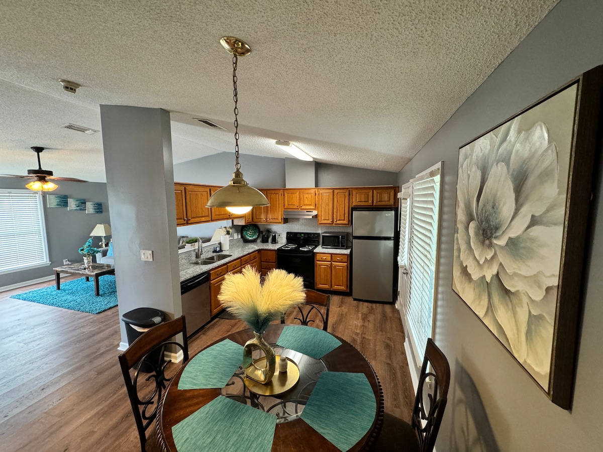 Jedná se o krásný dům se 3 ložnicemi, 2 manželskými postelemi a 1 manželskou postelí King. Je také vybaven 2 koupelnami s toaletou. V každém pokoji v domě je chytrá televize, která ti umožní sledovat některé kanály (pokud máš účet, máš přístup na Netflix, Hulu, Amazon Prime). Vysokorychlostní wifi v celém domě. Plně vybavená kuchyně pro vaření a pračka/sušička uvnitř domu. Vše, co budeš potřebovat, aby ses cítil/a jako doma. Tento dům je po každém nájemci důkladně uklizený.