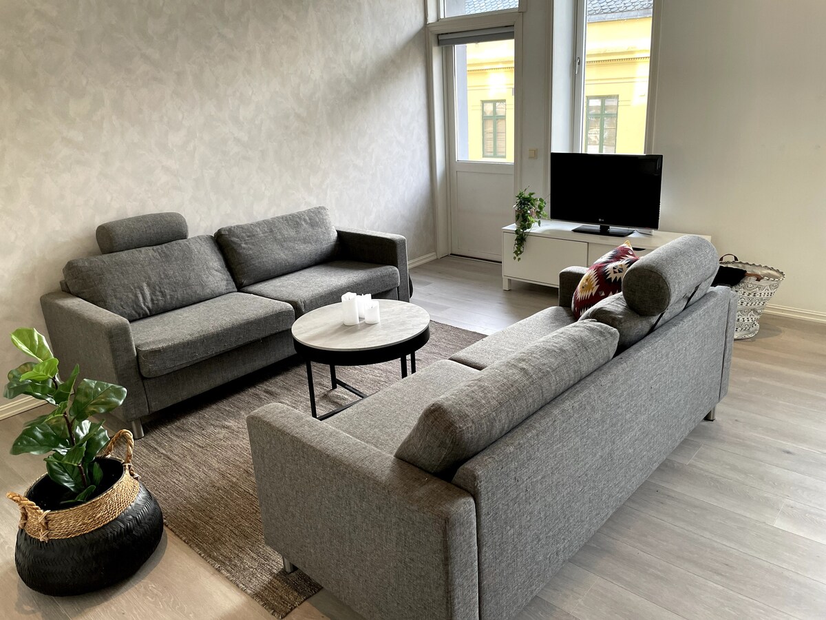 Vítej v našem krásném bytě přímo v srdci města Ålesund. Pokud chceš nakupovat, vyzkoušet noční život nebo jen prozkoumat město, dostaneš se k němu během několika minut chůze od bytu.