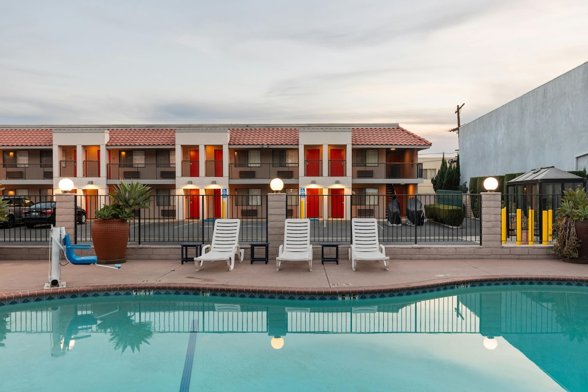 We offer newly renovated, modern rooms designed with the perfect blend of comfort and convenience at our boutique motel. This stylish place is central to must-see destinations like the SoFi Stadium, Disneyland and Universal Studios. Free: Wi-Fi, Cable TV, Parking, Micro Fridge, Microwave, Coffee Machine, All-Inclusive Utilities, Friendly and Professional Front Desk Staff, 24/7 Security. This room has a king size bed that comfortably sleeps 2 adults and 1 child. Žádná kauce. Příjezd 24/7.