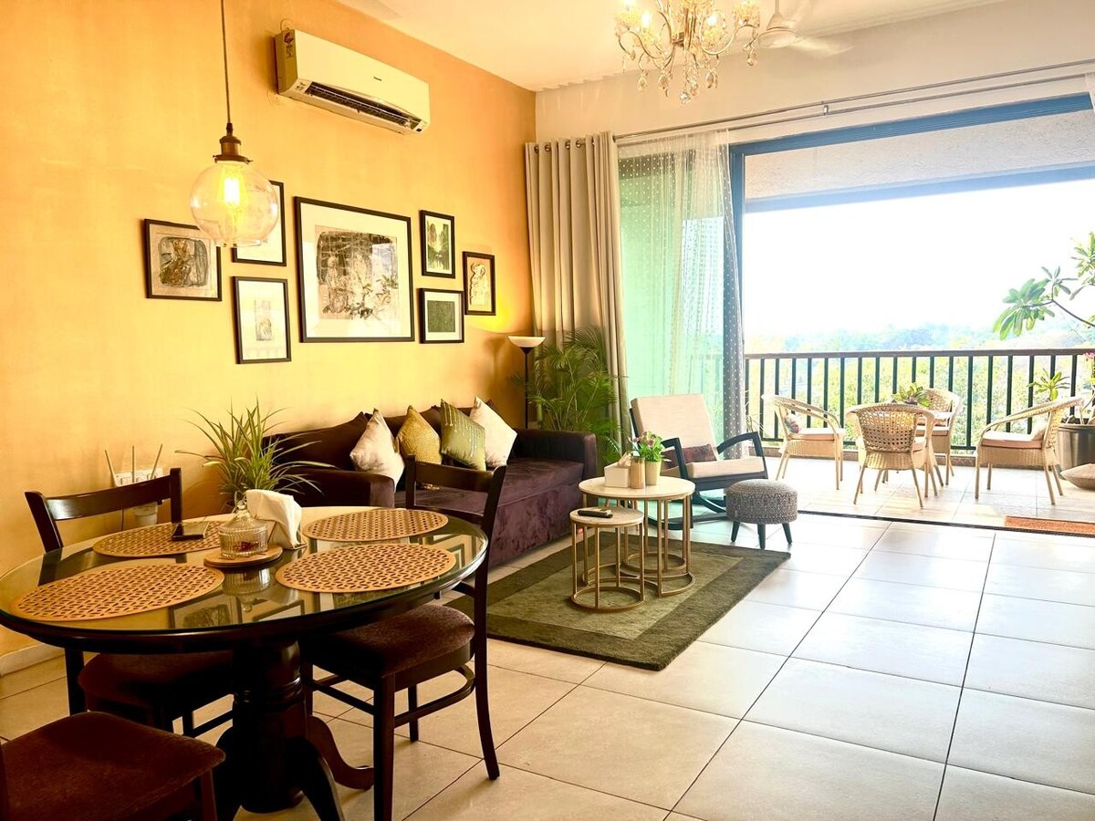 A luxurious 3bhk with unique feature in every space . Double height living and dining room with windows opening to beautiful swimming pool and trees providing soothing view. Bedrooms have balcony or small lawn for enjoying morning coffee, all the bedrooms are incorporated trees or plants to get fresh and pleasant vibe which one might miss in the city homes. All the existing trees in the wadi are preserved This stylish and unique place sets the stage for a memorable trip.
