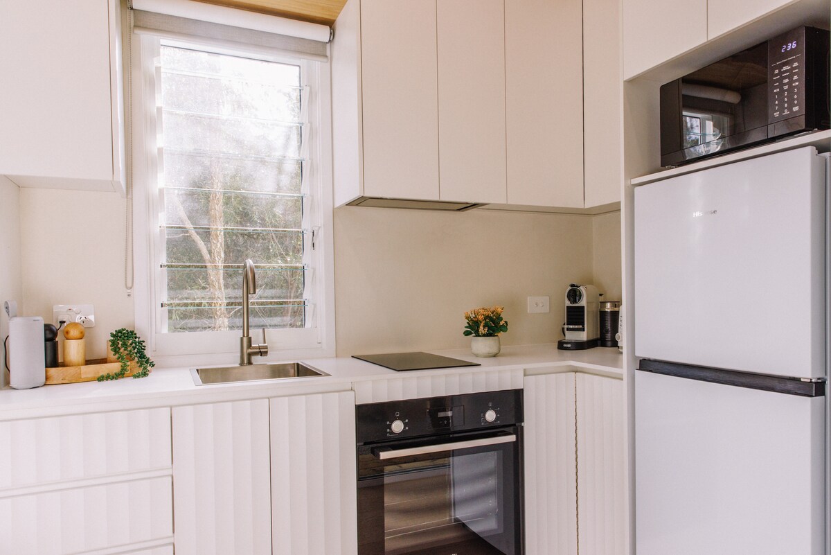 Lil' Birdsong tě přivítá stylovým dekorem a může se pochlubit veškerým vybavením, které potřebuješ pro relaxační a oživující pobyt. Neočekávaná oáza, obklopená klidnými zvuky původních ptáků a listnatými výhledy z lněných prostěradel. Ponořte se do vany pod hvězdami, zpívejte si u ohně nebo si užijte soukromou infračervenou saunu s výhledem na stromy! Dokonalé útočiště pro páry. Dokonale se nachází mezi jezerem Mac a epickými plážemi Newys, ideální místo pro zachycení východu nebo západu slunce.