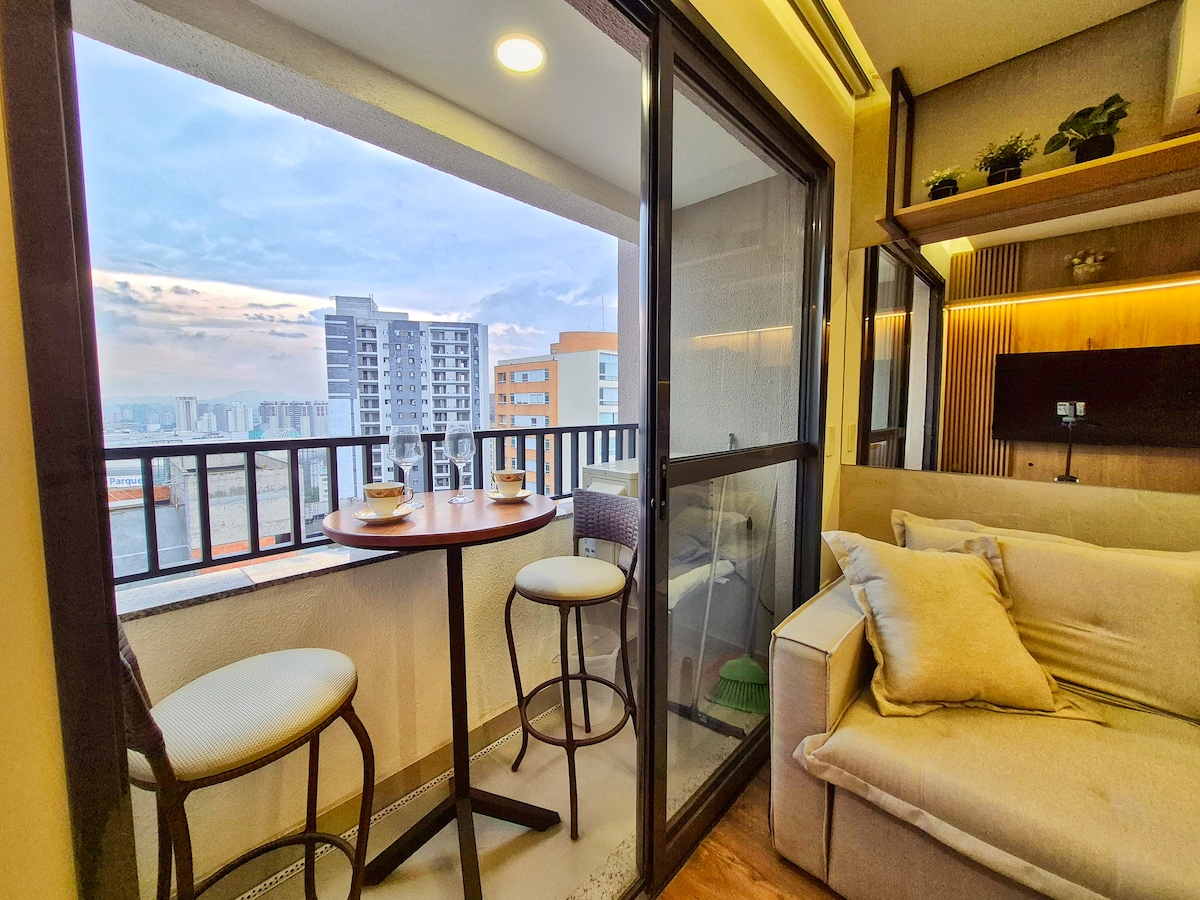 Nové, útulné, stylové studio, 500 metrů od Allianz Parku! V blízkosti Albert Einstein Hospital (Perdizes), Bourbon Mall (divadlo Bradesco), Sesc Pompeia. 5 minut jízdy od Espaço Unimed, Vl. Country, Audio a Tuca Theater. Integrovaný balkon, manželská postel v mezipatře, rozkládací pohovka, dvě chytré televize, rychlý internet 500 Mb/s a plně vybavená kuchyň. V kondominiu: bazén, posilovna, gurmánský prostor s grilem, pec na pizzu, prádelna a coworking. Ideální pro volný čas nebo práci! Žádné místo v garáži.