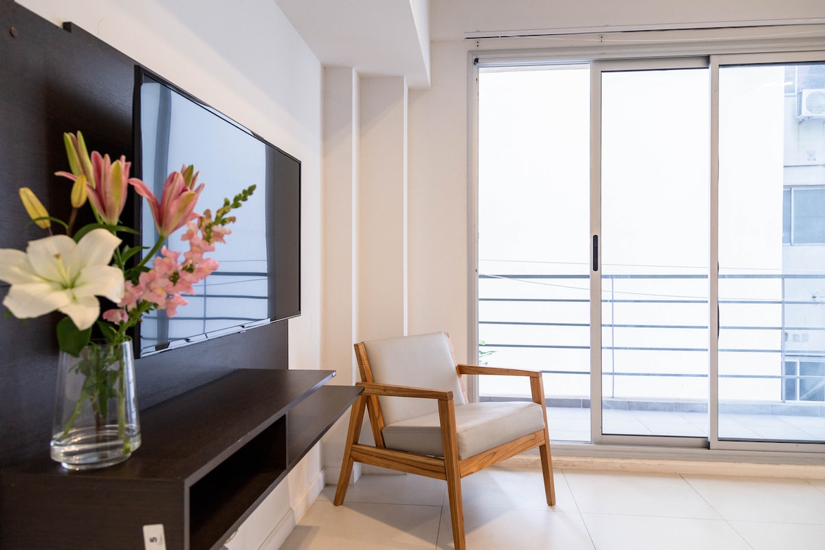 NOVÁ MATRACE!! MANŽELSKÁ POSTEL! Buď vítán odpoledním sluncem, který zaplavuje tento prostorný, plně vybavený garsonka v tradiční čtvrti Almagro. Jen pár metrů od italské nemocnice, nedaleko mýtického Centennial Parku a s spojením s celým městem. - Velký balkon s jasným výhledem, ideální pro relaxaci před nebo po dlouhém dni ve městě. Wi-fi internet 100Mb Chytrá televize LED 40-Flow, youtube, chromecast atd.