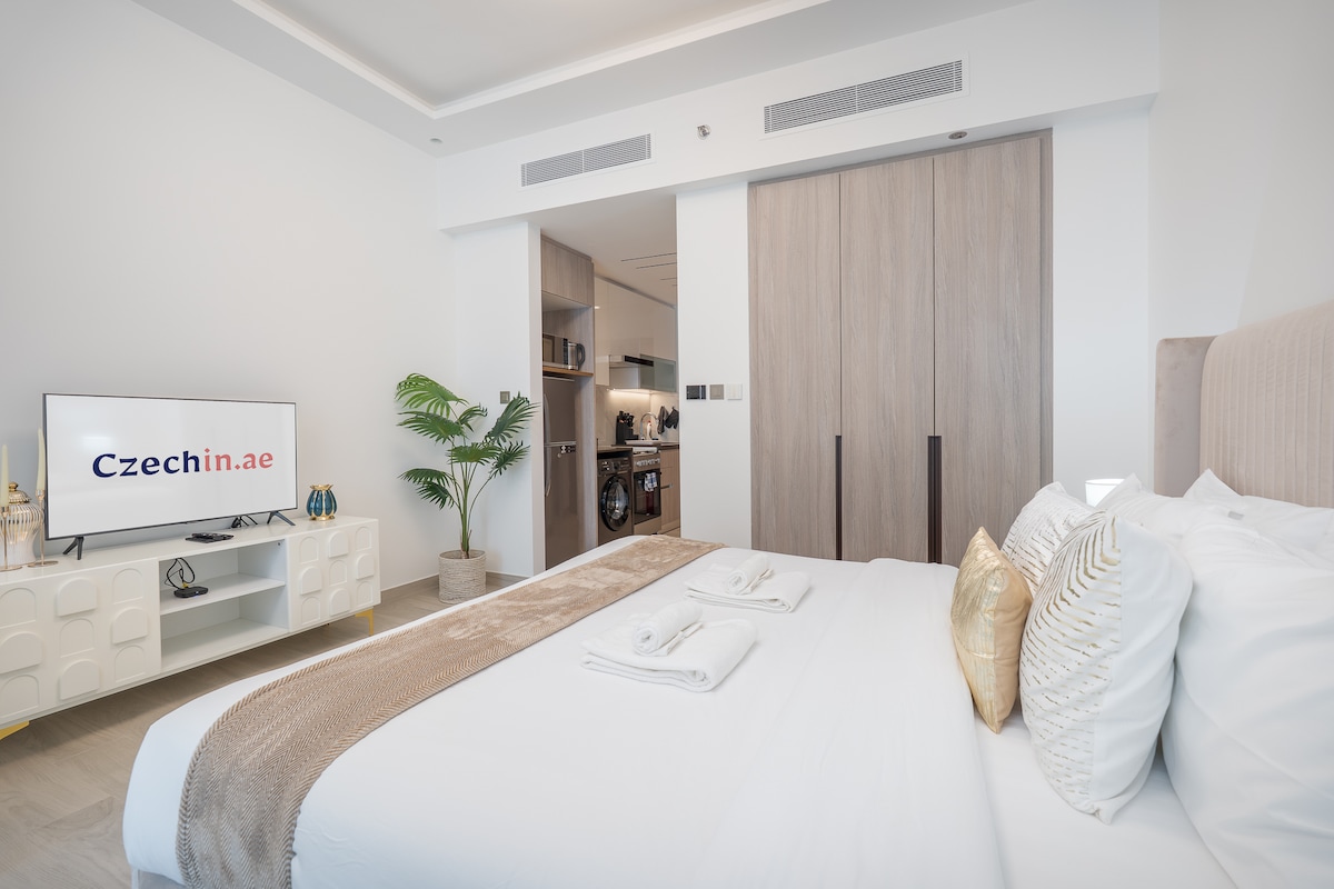 S potěšením představujeme elegantní prémiové apartmány s jednou ložnicí ve slavné věži Me Do Re! Moderní design interiéru kombinuje pohodlí a funkčnost každého prostoru. Najdeš zde prostorný obývací pokoj s panoramatickým výhledem na město, vybavenou kuchyň a útulnou ložnici. Ideální volba pro ty, kteří oceňují vysokou úroveň pohodlí a chtějí si užít atmosféru prestižní dubajské čtvrti