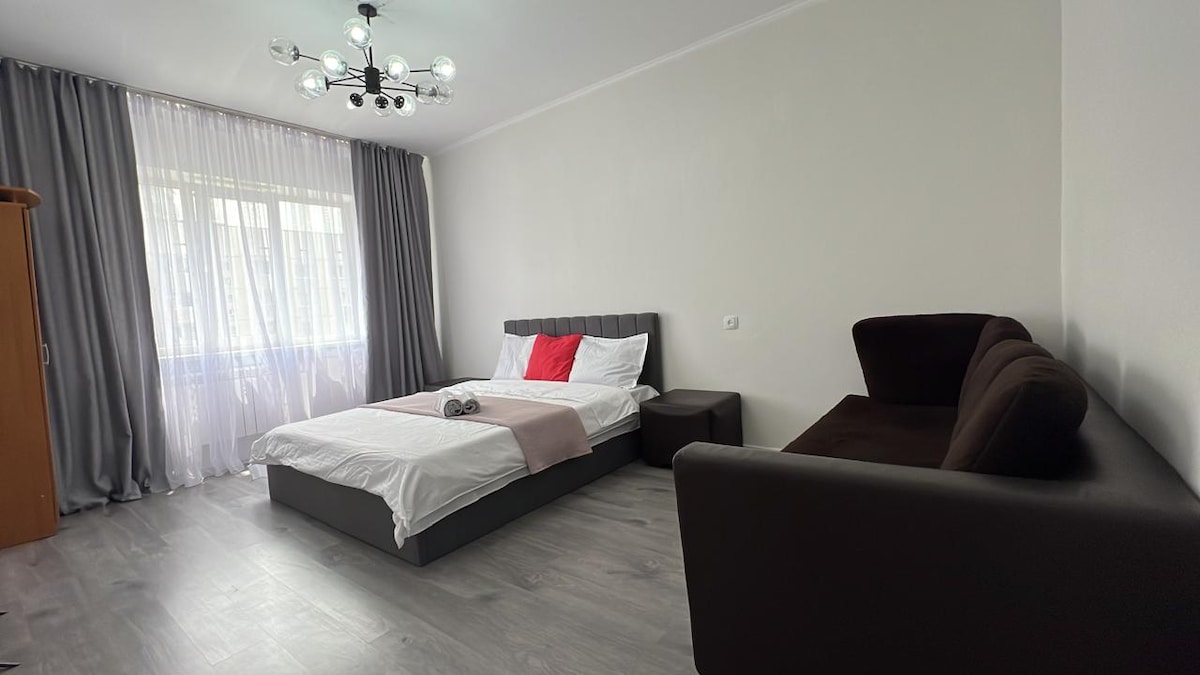 Útulný byt poblíž stanice metra Sayran, obchodů a kaváren