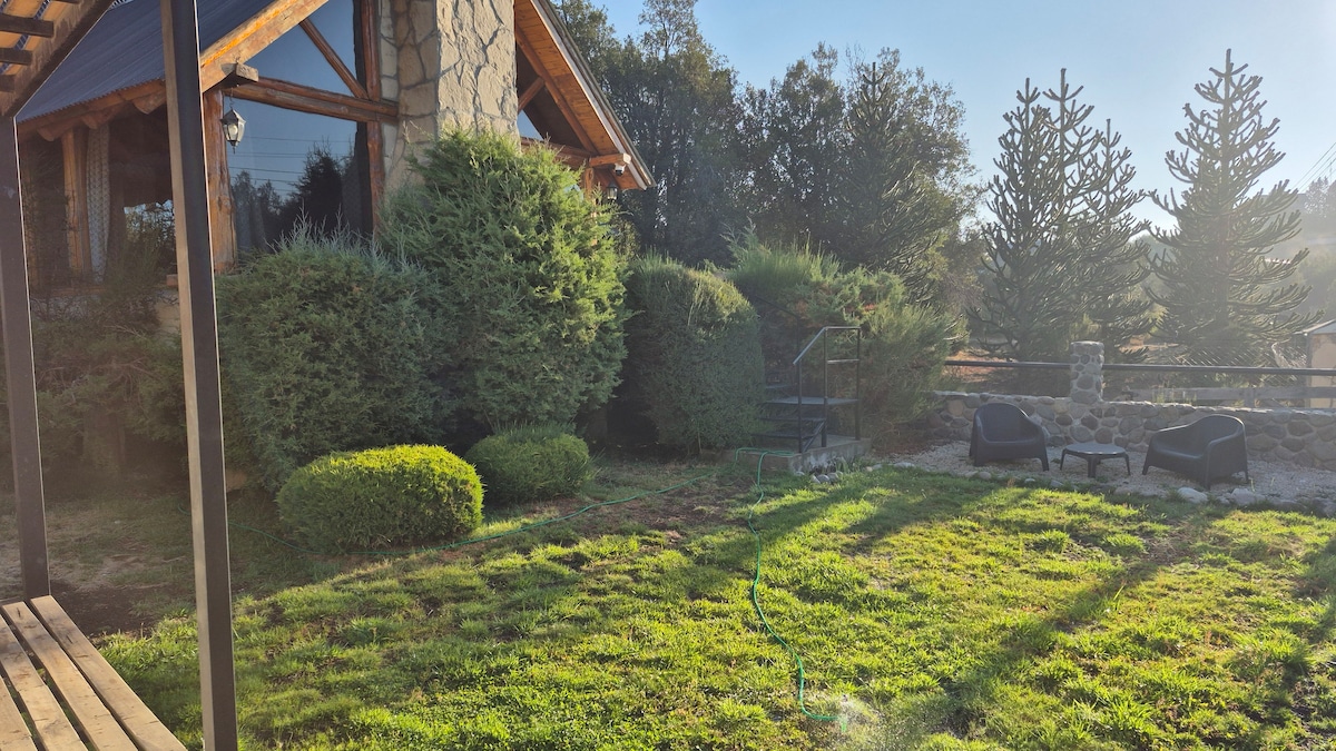Es un sitio confortable y acogedor que hará muy grata tu estadía. Está ubicado en un entorno natural rodeado de montañas y cerros, lagos, lagunas y playas de acceso libre. Las araucarias, radales y notros también forman parte del lugar. Se encuentra a 4 kms del centro comercial de la Villa y frente a la ruta pcial. 13. Te vamos a atender nosotros (Vero y Diego), ofreciéndote un trato personalizado y amigable. Te invitamos a disfrutar de un tiempo reparador y sobre todo el aire puro de los Andes.