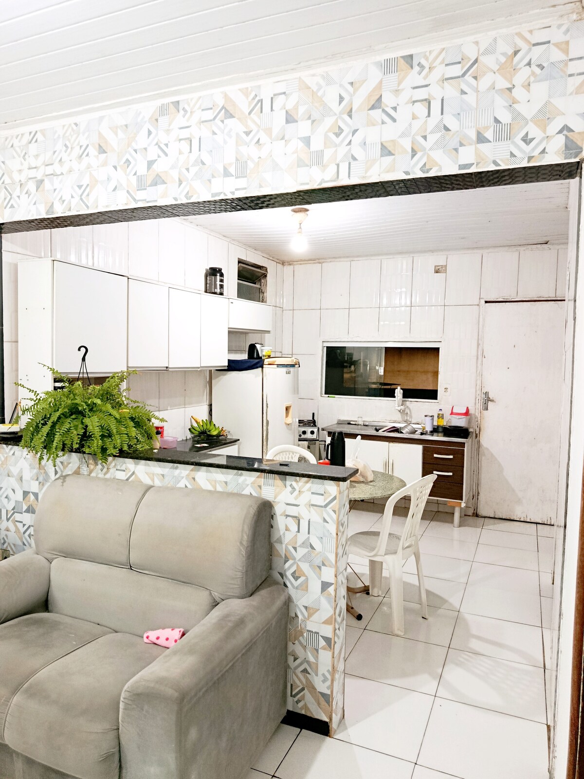 Uma acomodação de 600m2 tranquila e agradável. A casa conta com um espaço amplo, com um jardim bastante verde, dois quartos espaçosos e arejados (um deles sendo suíte), um banheiro, cozinha, internet wifi disponível em todo ambiente.