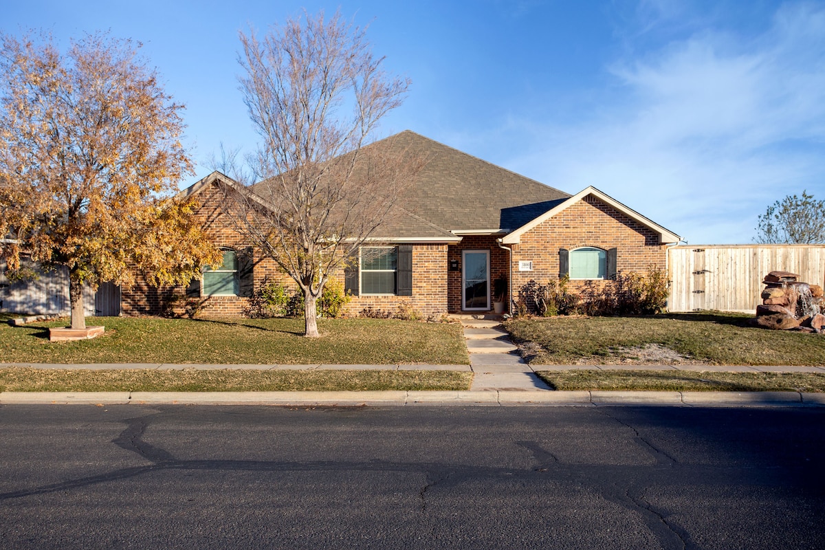 Přijeď a užij si tento nádherný domov!🏡 Skvělé pro 🚗CESTUJÍCÍ skupiny nebo 🧑🧑🧒🧒 VELKÉ rodiny! Klidná čtvrť s ☕️KAVÁRNOU, ⛽️ČERPACÍ STANICÍ a 🍗JÍDELNOU přes ulici! Snadný přístup na I-27 a krátká jízda na I-40. 4 LOŽNICE a 3 KOMPLETNÍ KOUPELNY! Krásná hlavní ložnice, toaleta a šatník. Skvělé pro přípravu! 🏋️♀️K dispozici je domácí posilovna s kabelovým strojem, stojanem na dřepy, lavicí, činkami a činkami! Skvělý venkovní prostor pro posezení a grilování.
