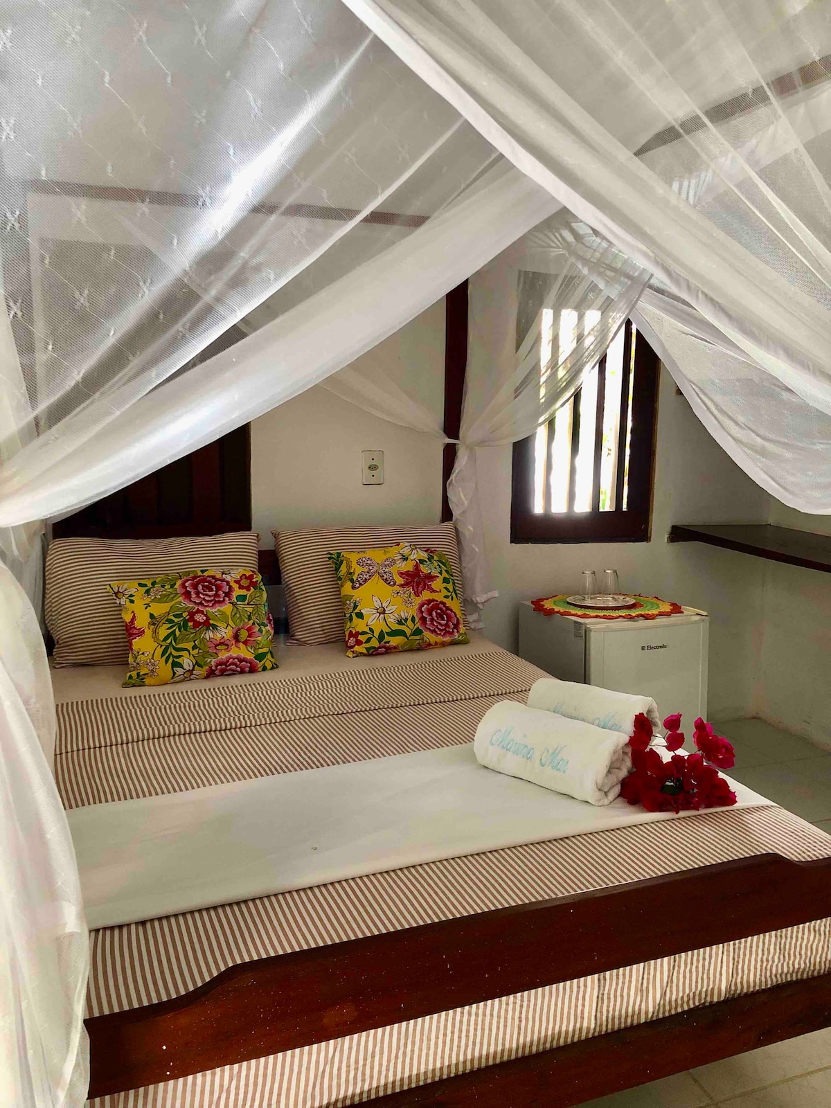 O quarto possui cama queen, ar condicionado, wi-fi, frigobar e banheiro privativo. Perfeito para casais ou amigos que desejam visitar uma das praias mais lindas do Ceará. Incluso café da manhã(caso haja alguma restrição alimentar informe no check in). Estamos há 300m da praia. Além disso, temos um restaurante mineiro, avaliado com certificado de excelência no TripAdvisor como o 4* lugar dos 25 restaurantes existentes em Icarai de Amontada.
