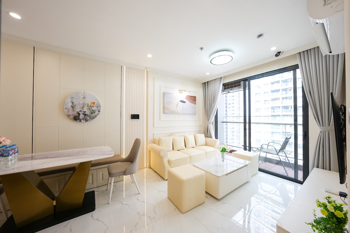 - 5* moderní styl pravého designu - Otevřít pohled - Luxusní nábytek + Super manželská postel 2mx2m2 + 2Tv 55" & 43" + Netflix 4K + Soundbar + rozprašovač + Jídelní stůl a čajový výtah + Pramenitá voda, kavárna + Ventilátor bez čepele + Skříň, Posezení, Makeup Table, Ohřívač vody, Wifi, Zvuk kuchyně, Lednice, Pračka, Trouba a Mikrovlnná trouba + Poslechni si neinzerovanou hudbu na YouTube - Centrální poloha jen pár kroků od Vincom Megamall & Water Music Square - Klidný odpočinek se snažte při práci relaxovat a pracovat