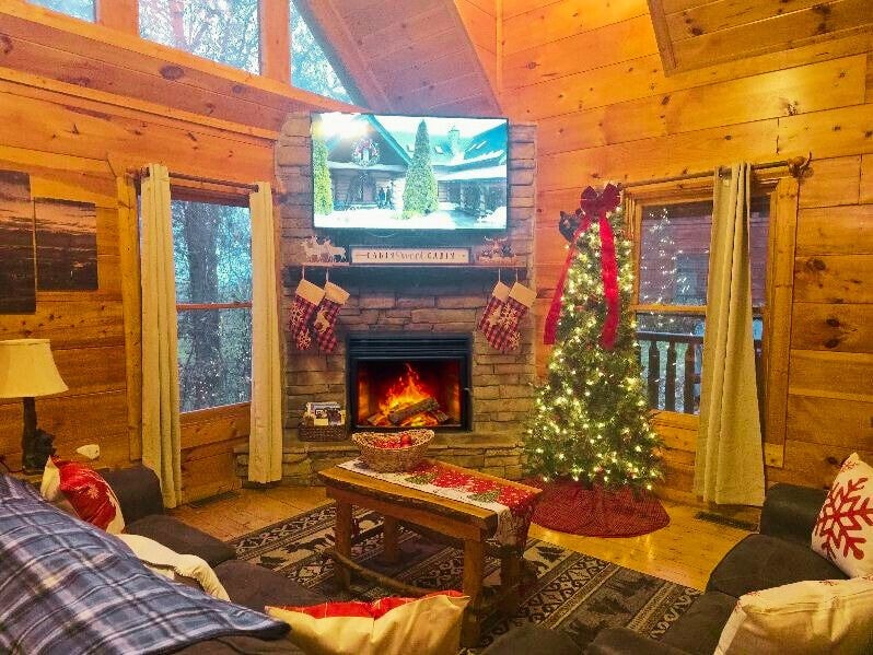 Just a 2-mile drive to the Smoky Mountains National Park! This beautiful 2 story cabin comfortably sleeps 4 with 2 full bathrooms. There is a large master bedroom with a King bed and a sitting area. The main level includes a Queen bed. There is a hot tub and private swing bed on the downstairs porch. The main porch has rocking chairs and picnic table. The cabin is tastefully decorated for every season. Let me know if you are celebrating