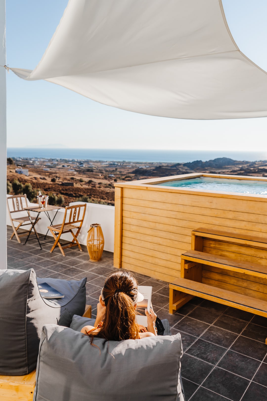 Luxusní apartmá s výhledem na ostrov Naxos a venkovní vířivkou