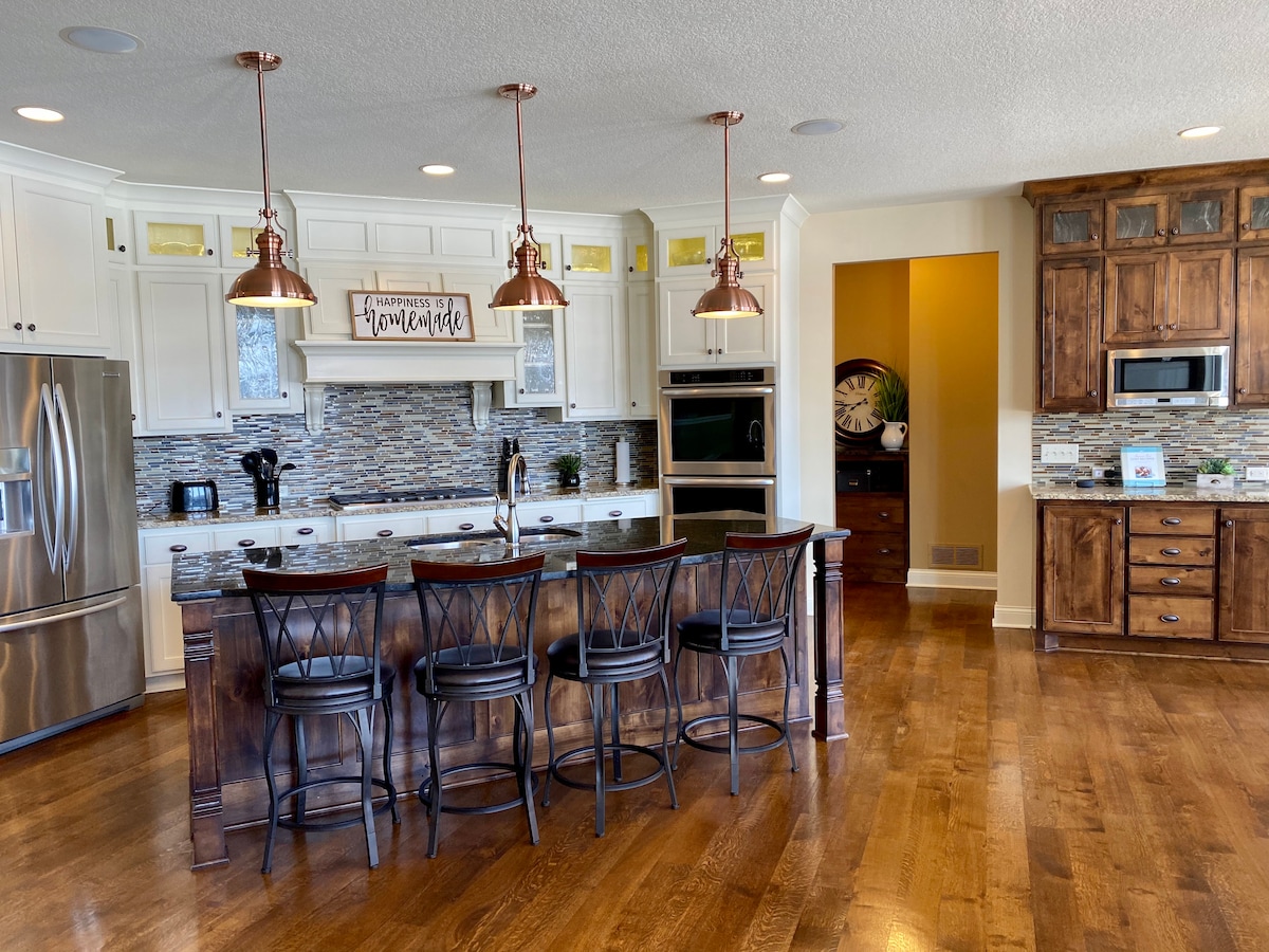 Světlý a útulný řadový dům Champlin se 2 ložnicemi/2,5 koupelnami s ložním prádlem Hotel Collection®, postelemi King + Queen, krbem, rychlým Wi-Fi a vyhrazeným pracovním prostorem. Plně vybavená kuchyň + kávovar a bezplatná garáž pro 2 auta. Ideální pro krátkodobé nebo dlouhodobé pobyty (30–60 dní) – ideální pro přestěhování, pobyty z pojištění, práci na dálku, služební cesty, páry a rodiny. Vhodné pro psy (bez koček). V okolí jsou obchody s potravinami, restaurace a turistické stezky – asi 20–25 minut do centra Minneapolis, na letiště MSP a MOA.