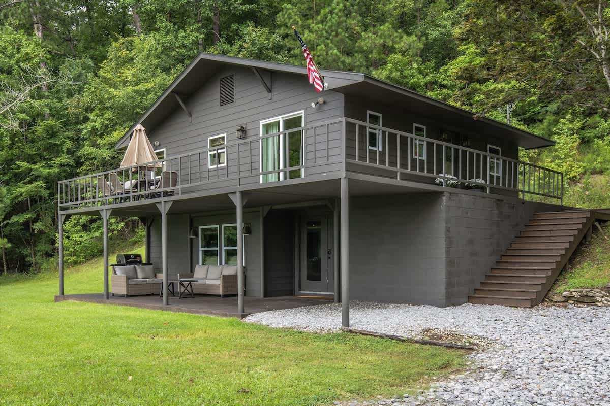 Zastrčený v klidné zátoce u jezera Martin, tento útulný dům u jezera se 3 ložnicemi, 3 koupelnami a hernou s rozkládací pohovkou, nabízí klidný výhled a moderní pohodlí s krásným výhledem na vodu z každého pokoje. Užij si otevřený obývací prostor, plně vybavenou kuchyň a terasu ideální pro ranní kávu nebo večerní víno. S prostorem až pro 8 hostů a snadným přístupem k restauracím a místním místům je to perfektní kombinace relaxace a pohodlí. Ideální pro rodinné výlety, pobyty s přáteli nebo klidné útočiště.