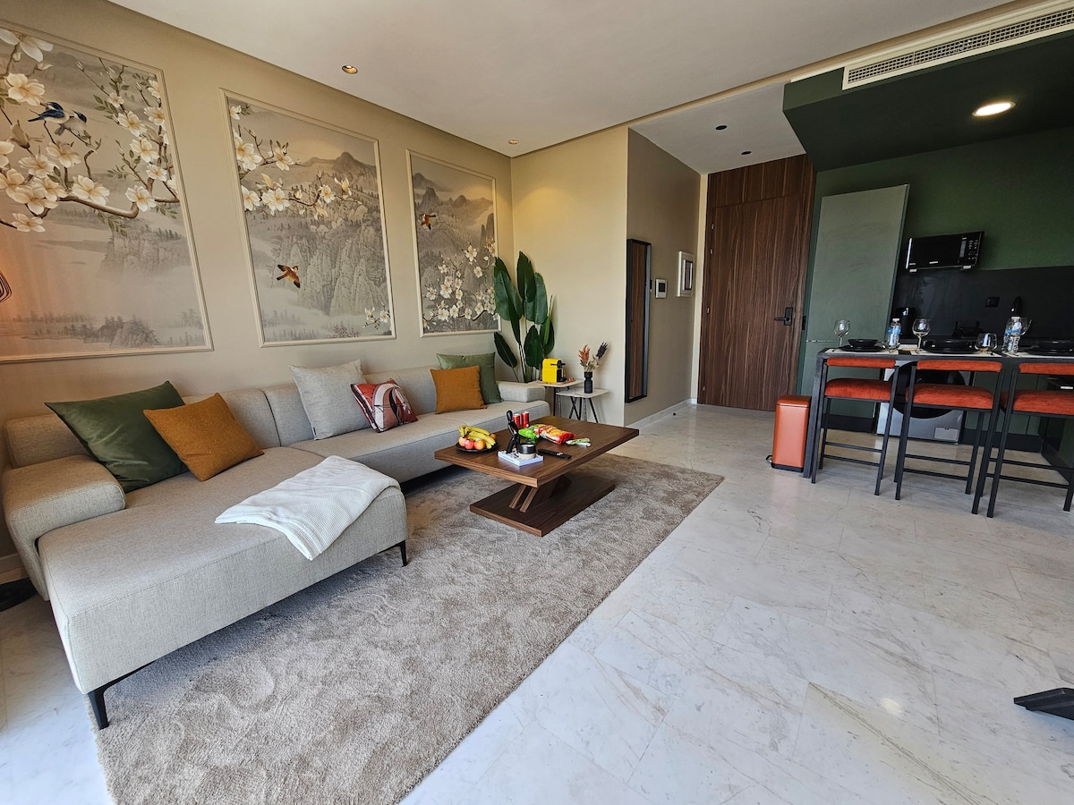 Unwind in our luxurious studio, where comfort meets convenience in one of Casablanca’s most desirable neighborhoods. Featuring elegant design, a private gym, and a spacious balcony—perfect for your morning coffee or enjoying breathtaking evening views. With top restaurants, shops, and must-see attractions just a short walk away, you'll have everything at your doorstep. Whether you're visiting for business or leisure, it's the ideal escape to relax and recharge.