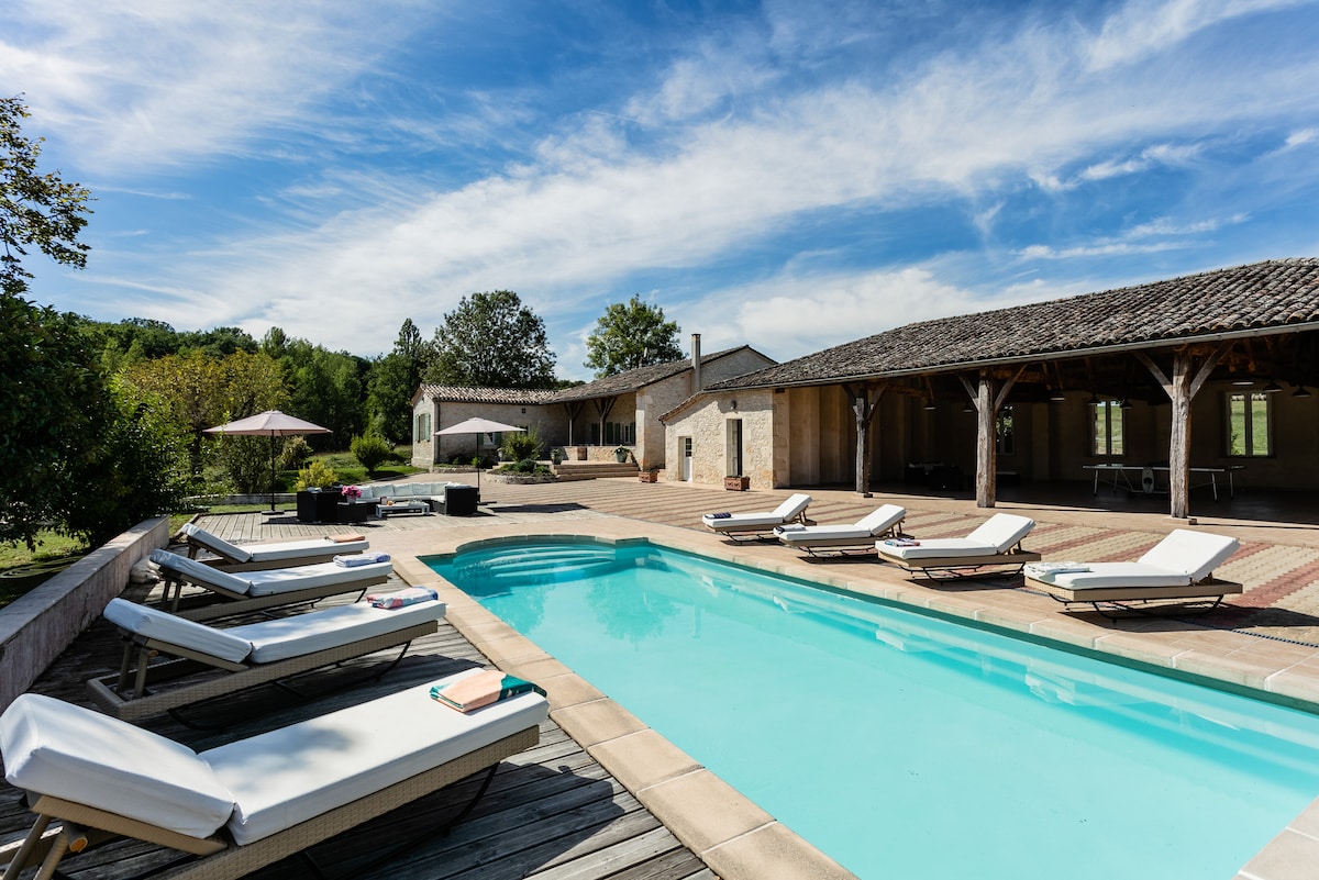 Představte si bránu, která se otevírá do světlého kamenného prostředí v srdci Lotu. Klid je tam, hmatatelný. Uvnitř to funguje: dřevo, světlo, textury, všechno dýchá elegancí. Ráno se ponoř do vyhřívaného bazénu, dej si snídani pod pergolou a užij si den, který se táhne do rytmu slunce. Pak film, při kterém se schoulíte na měkké pohovce. Tady dýcháme, vychutnáváme si a zapomínáme na čas.