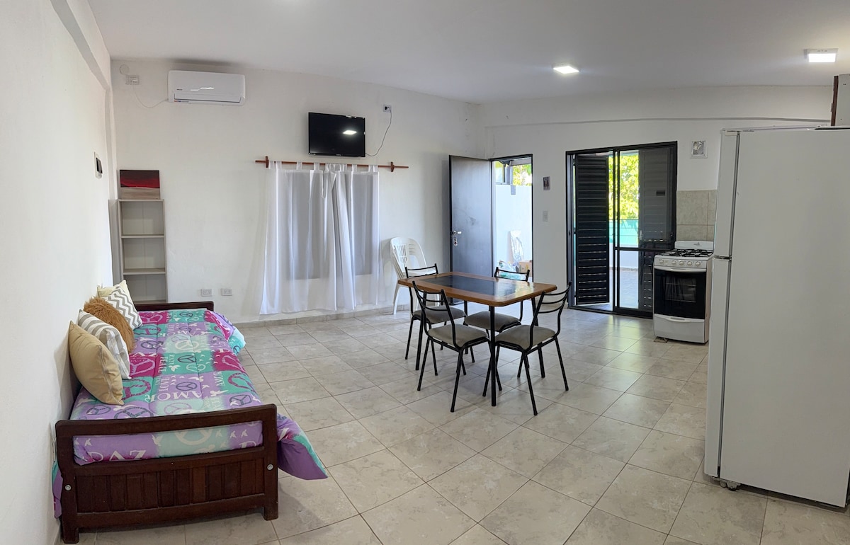 El dpto con hidromasaje de complejo quiya es un monoambiente de 35m2 equipado con cocina, microondas, heladera, vajilla y utensillos de cocina. Brindamos ropa de cama, toalla de rostro y toallones. Wifi, Smart TV, Netflix. Cochera cubierta privada A sólo 2 cuadras de la costanera del Arroyo, un lugar rodeado de naturaleza y con una tranquilidad que garantiza un buen descanso. cerquita del centro, supermercado y museos