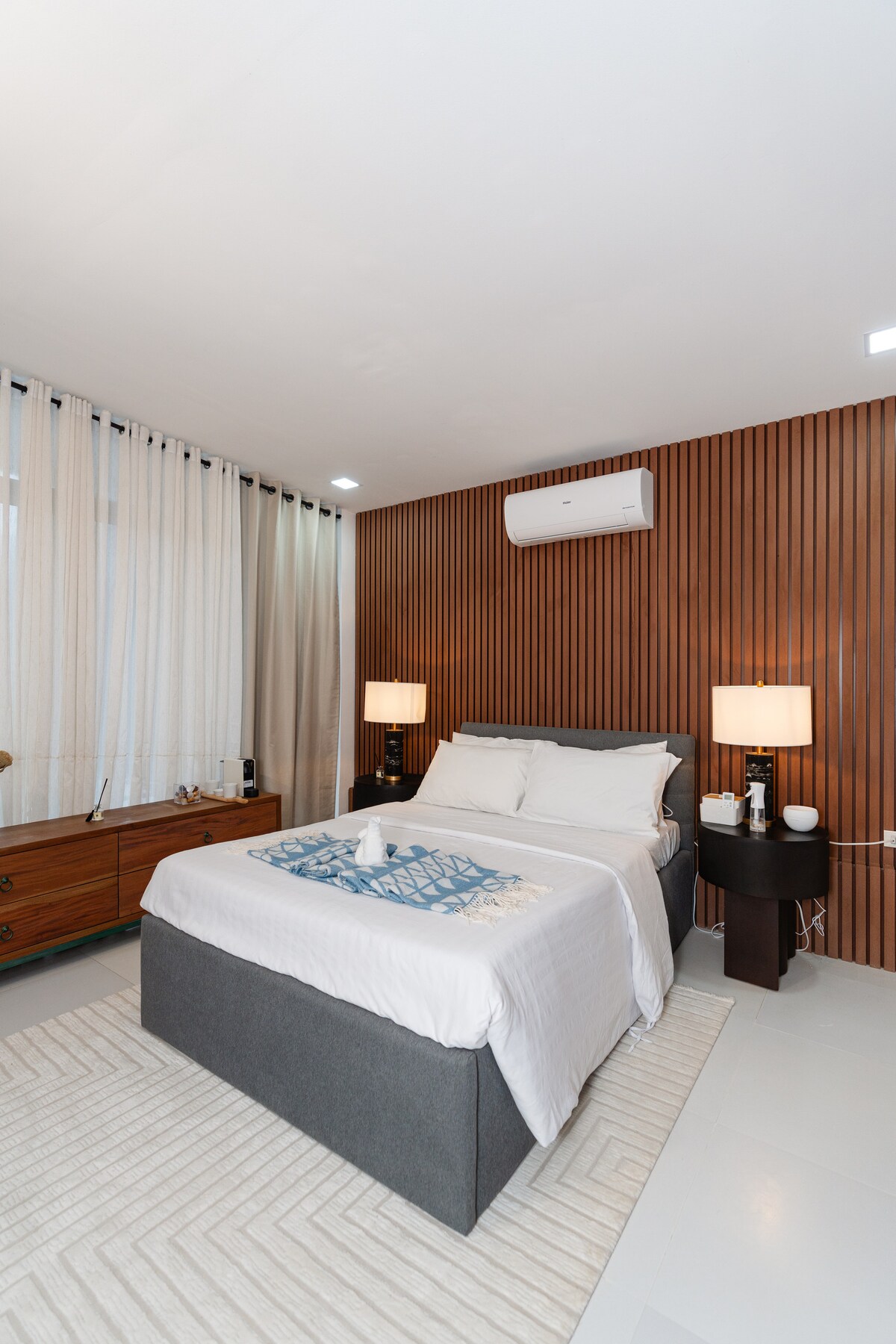 Tento soukromý penzion s jednou ložnicí, který se nachází uvnitř bujných zahrad Paradise Blanc, nabízí útulné a minimalistické útočiště pro dva. Nachází se ve stanici 1, Boracay, a budeš si užívat plný přístup k poklidnému celobílému bazénu vily, prostorným venkovním salonkům a klidným zahradním atmosférám – to vše při vlastním exkluzivním prostoru k odpočinku. Ideální pro páry, sólo cestovatele nebo pracovníky na dálku, kteří hledají klidný a stylový pobyt v blízkosti pláže.
