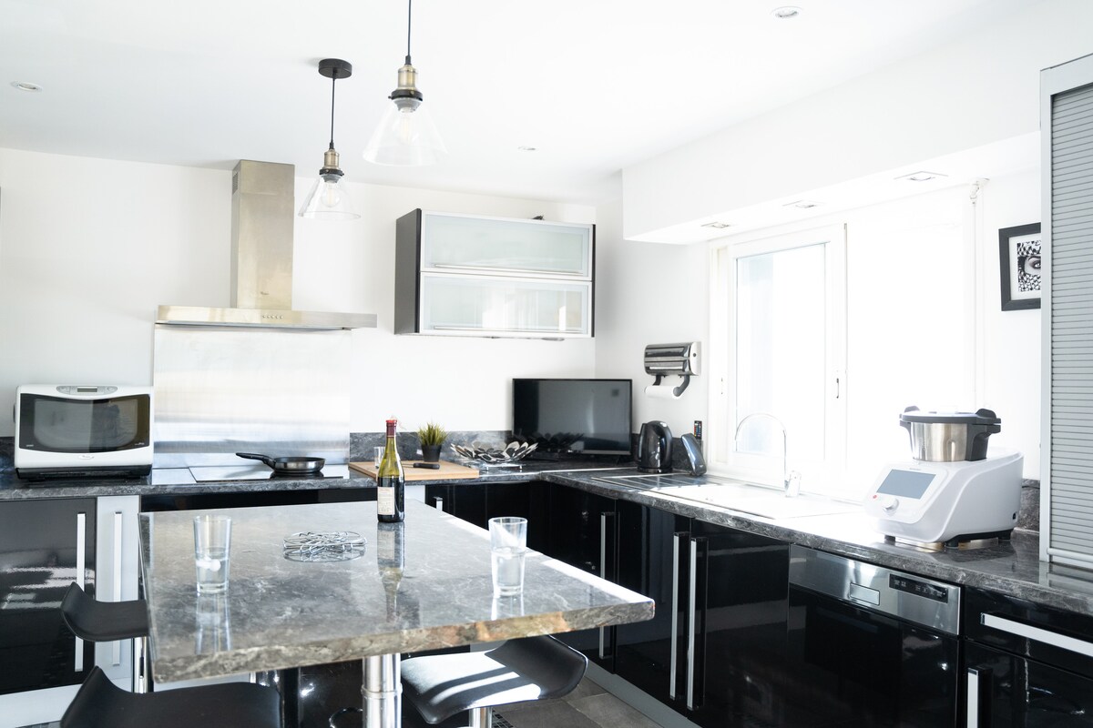** Speciální sazba pro CURISTY, dej nám vědět ** Kompletně zrekonstruovaný a vybavený 2pokojový byt, světlý s krásnou terasou, která není přehlížena. Tiché místo s bezplatným neveřejným parkováním a 2 kroky od všech potřebných služeb: pekárna, řeznictví, lékárna, obchody s bio potravinami přímo na ulici. Trh Carrefour a čerpací stanice jsou vzdáleny 5 minut chůze. Hyper-centrum je 5 minut chůze. Cures je 10 minut chůze. Tvůj klidný a pohodlný pobyt v tomto tichém ubytování