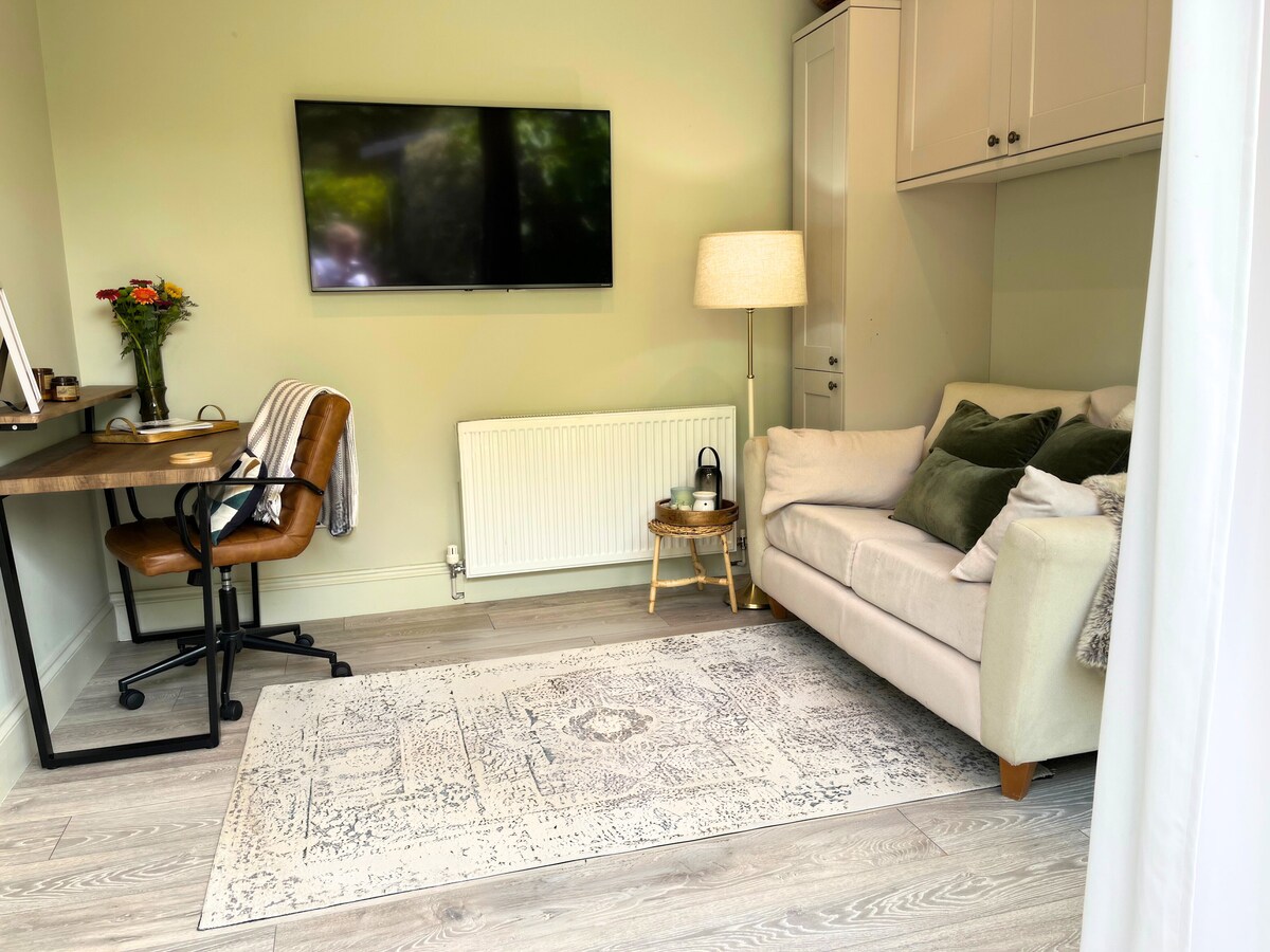 Světlý, vzdušný, prostorný penzion připojený k našemu domu. Zcela soukromý se všemi vybavením domácnosti s vlastním stravováním. Máme přátelské psy, které mají každý den přístup do naší zahrady a připojí se k vám na verandě u hlavní ložnice, pokud jsou venku. Vesnice má spoustu báječných procházek v okolí a máme letáky/mapy v domě pro vaši informaci. Živá hospoda jen kousek odtud s živou zábavou většinu víkendů. Návštěvníci našich hostů musí být jmenováni a odsouhlaseni před příjezdem