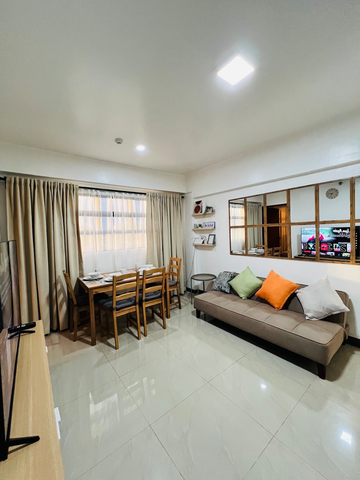 Odpočiň si a užij si pohodlný pobyt v naší jednotce - City Serenity. Jedná se o jednotku se dvěma ložnicemi a veškerým vybavením, které potřebuješ pro relaxační pobyt, plus majestátní výhled na horu Apo! ✅ 300mbps Wi-Fi - ideální pro práci na dálku ✅ 55palcová televize s Netflixem, Disney+, YouTube Premium a Amazon Prime pro tvůj filmový maraton ✅Kompletní vybavení kuchyně - indukční vařič, vařič rýže, rychlovarná konvice, kávovar ✅ 3 Klimatizační jednotka ✅Teplá i studená sprcha ✅Ručníky, šampon, kondicionér, sprchový gel ✅Fén ✅Žehlička