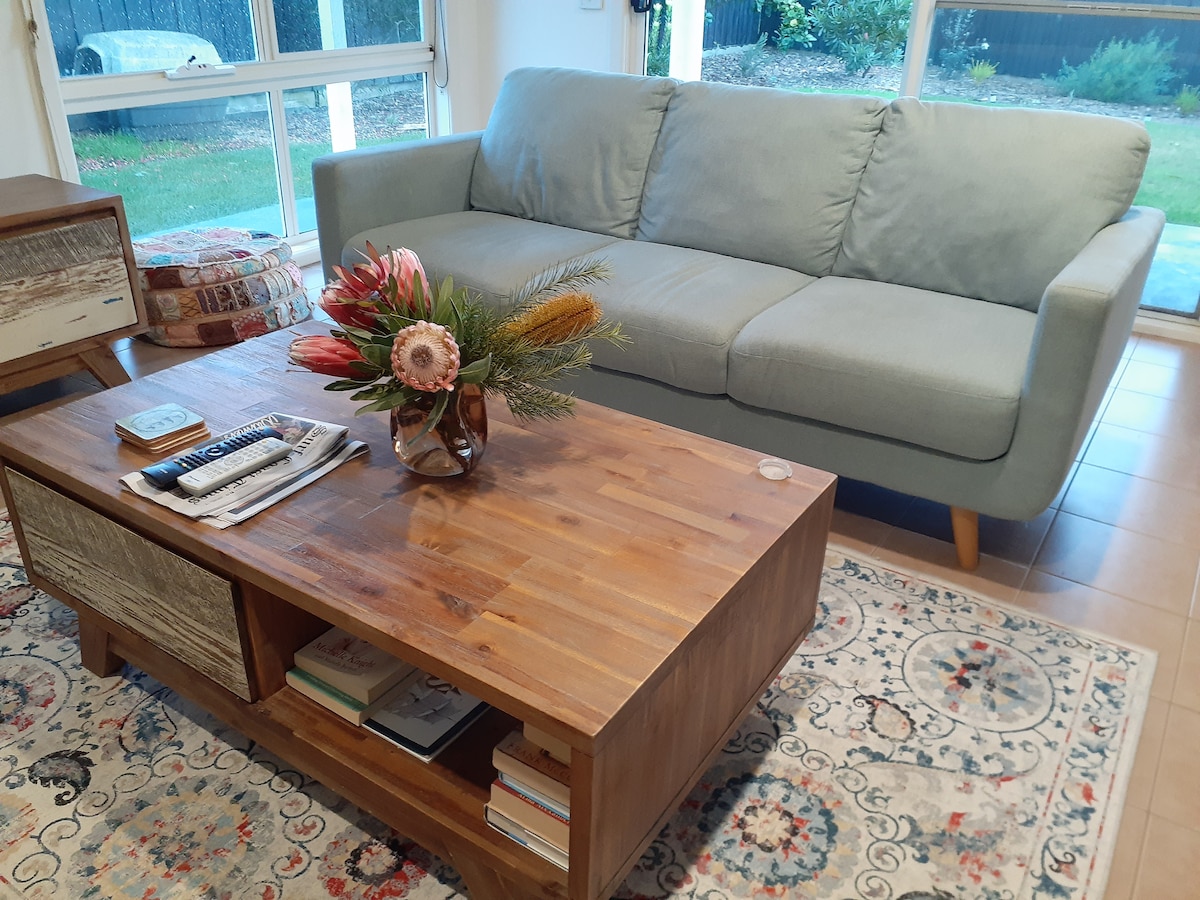 Vítejte v naší útulné chatě, páry si pobyt užijí a vše, co tato výjimečná oblast nabízí. Úžasné pláže, divoká zvěř, skvělé restaurace a všechny památky a divy Great Ocean Road jsou zde jen pro vaše potěšení. Místní komunita koalů je na dosah ruky a krmení královským papouškům je perfektní způsob, jak začít svůj den. Pláž je vzdálena 5 minut pěšky, východ slunce je zde dechberoucí, nebo si lehněte a nechte se ráno pozdravit zvlněnými kopci.