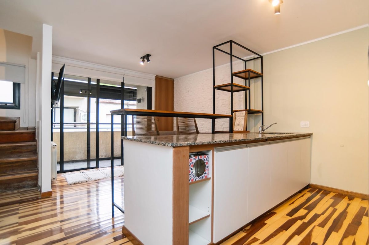 Velmi světlý loft navržený tak, aby v něm bylo možné kombinovat klid, funkčnost a skvělou atmosféru. Pouhé 2 bloky od nemocnice Hospital Español v La Plate a 10 minut od stadionu Estadio Único a centra města. Najdeš tu vysokorychlostní Wi-Fi, klimatizaci (topení i chlazení), prostorný balkon s výhledem na zelený dvůr a vše potřebné pro delší pobyty. Kromě ubytování na tebe čeká pečlivě připravený zážitek od začátku do konce – ideální pro ty, kteří si cení nejen ubytování, ale také toho, jak jsou přivítáni.